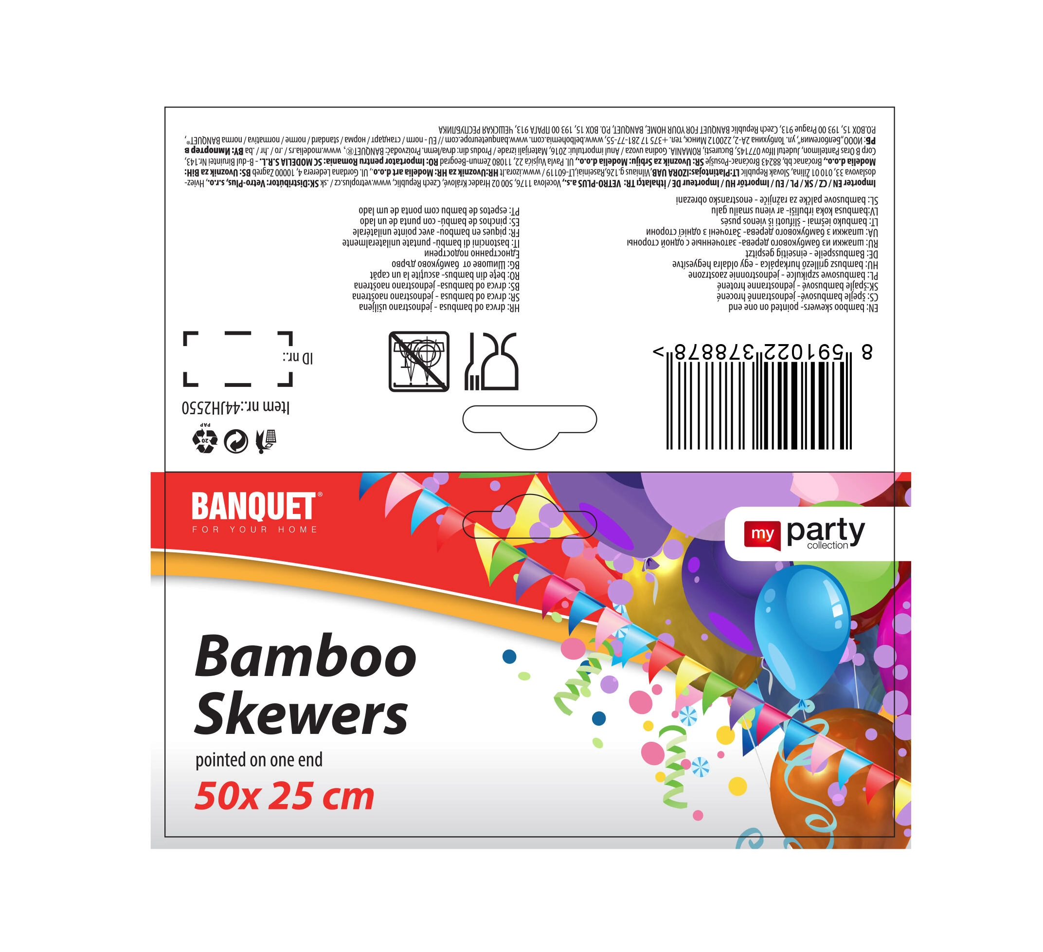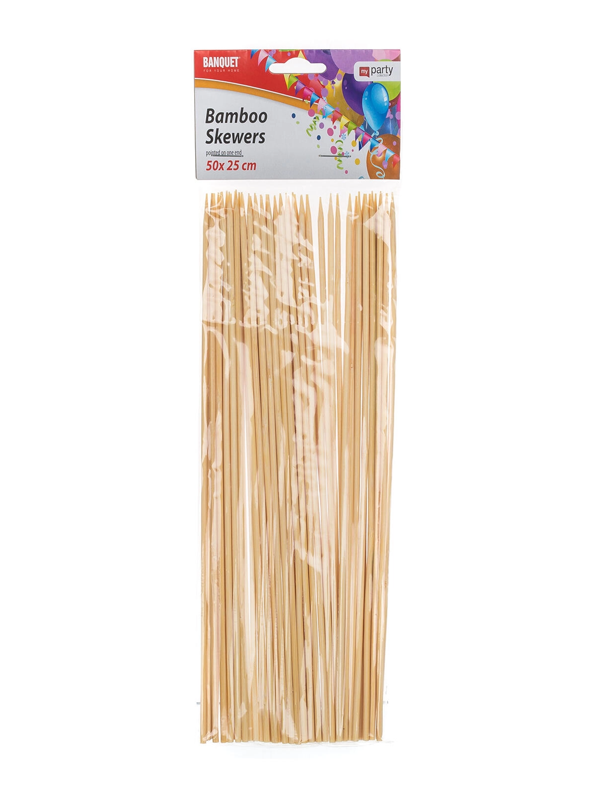 Univerzální délka 25 cm je ideální pro gril i troubu, ale také pro studené variace na oslavách a garden party. Balení 50 ks je praktické pro rodinné akce i větší pohoštění.