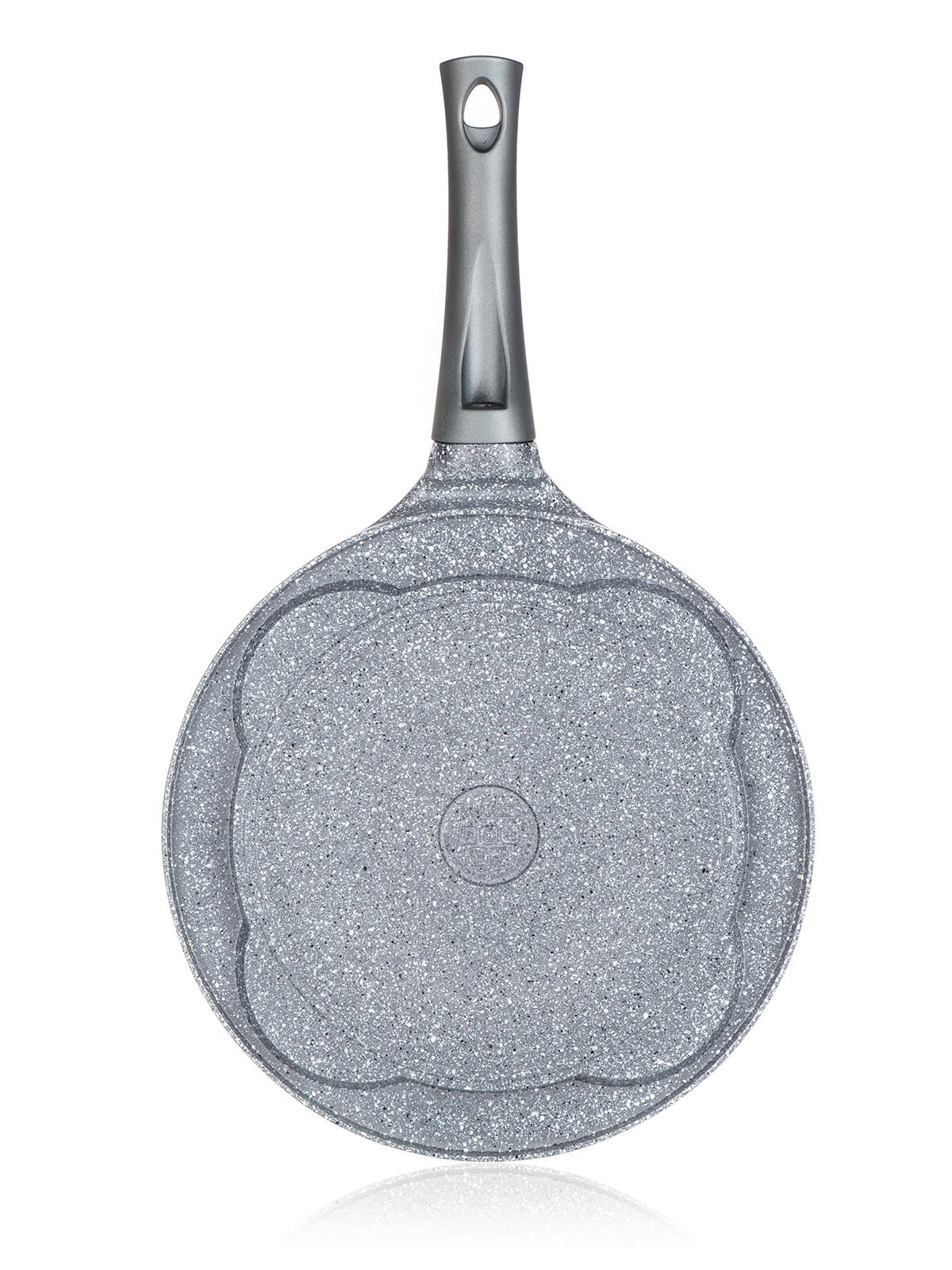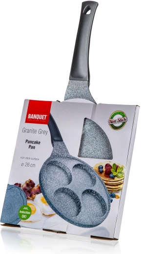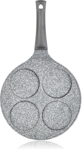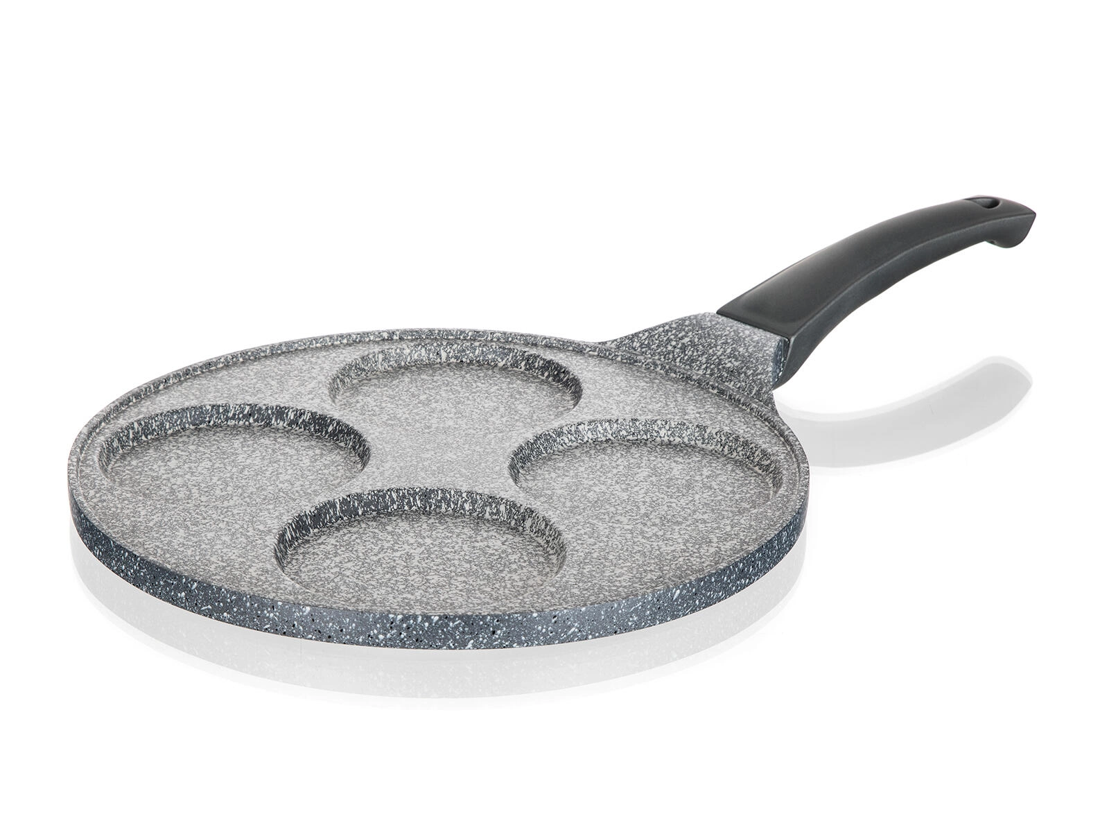 Litá hliníková pánev na lívance s povrchem GRANITE Grey je skvělou volbou pro každodenní snídaně i rychlé svačiny. Čtyři vyhrazené formy zajistí rovnoměrný tvar a propečení lívanců, volských ok nebo bramboráků, a to s minimální spotřebou oleje díky vysoce nepřilnavému povrchu.