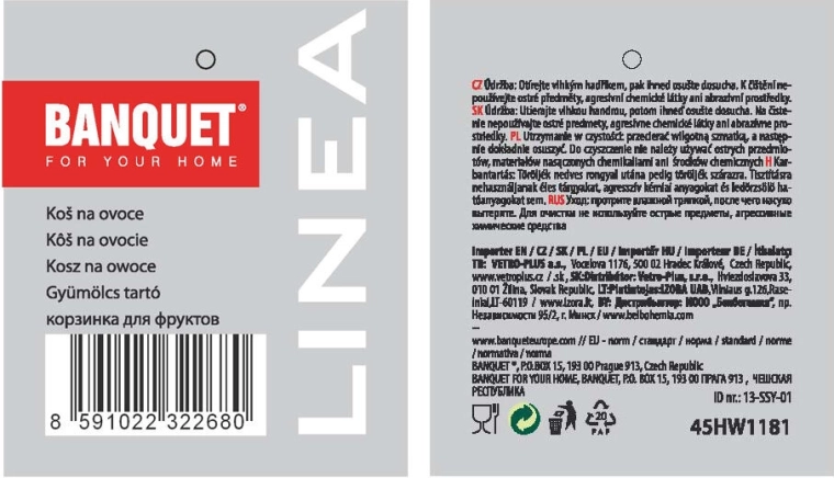 Koš je vyroben z kvalitního materiálu s odolným povrchem, který se snadno čistí a dlouhodobě si udržuje lesk. Je ideální pro servírování i skladování ovoce na kuchyňské lince či jídelním stole.