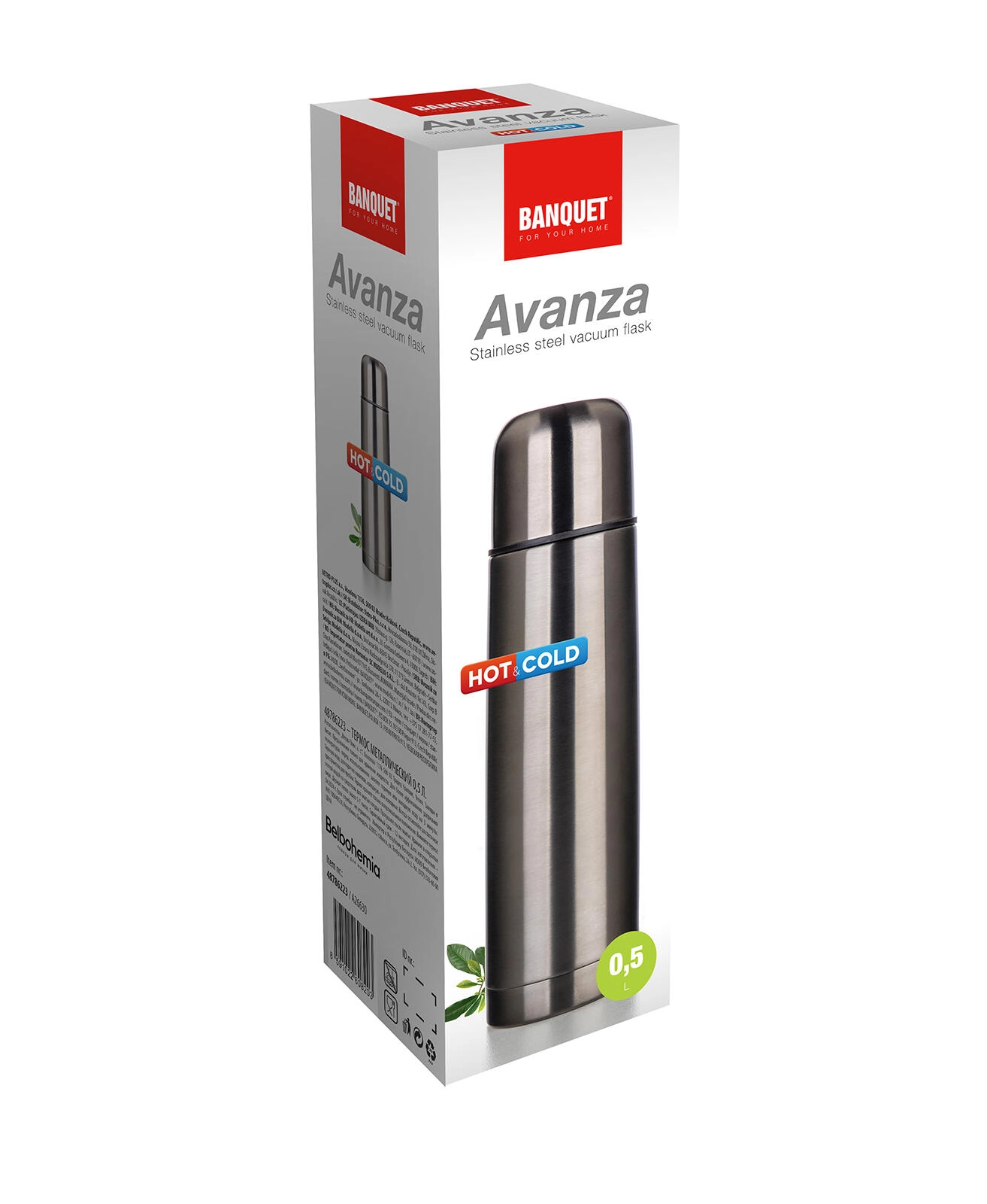 Kompaktní a odolná nerezová termoska AVANZA o objemu 0,5 l udrží vaše nápoje dlouho horké nebo studené. Díky dvouplášťové vakuové izolaci, praktickému tlačítkovému uzávěru pro nalévání jedním stiskem a víčku použitelného jako pohárek je ideální na cestování, do práce i na výlety.