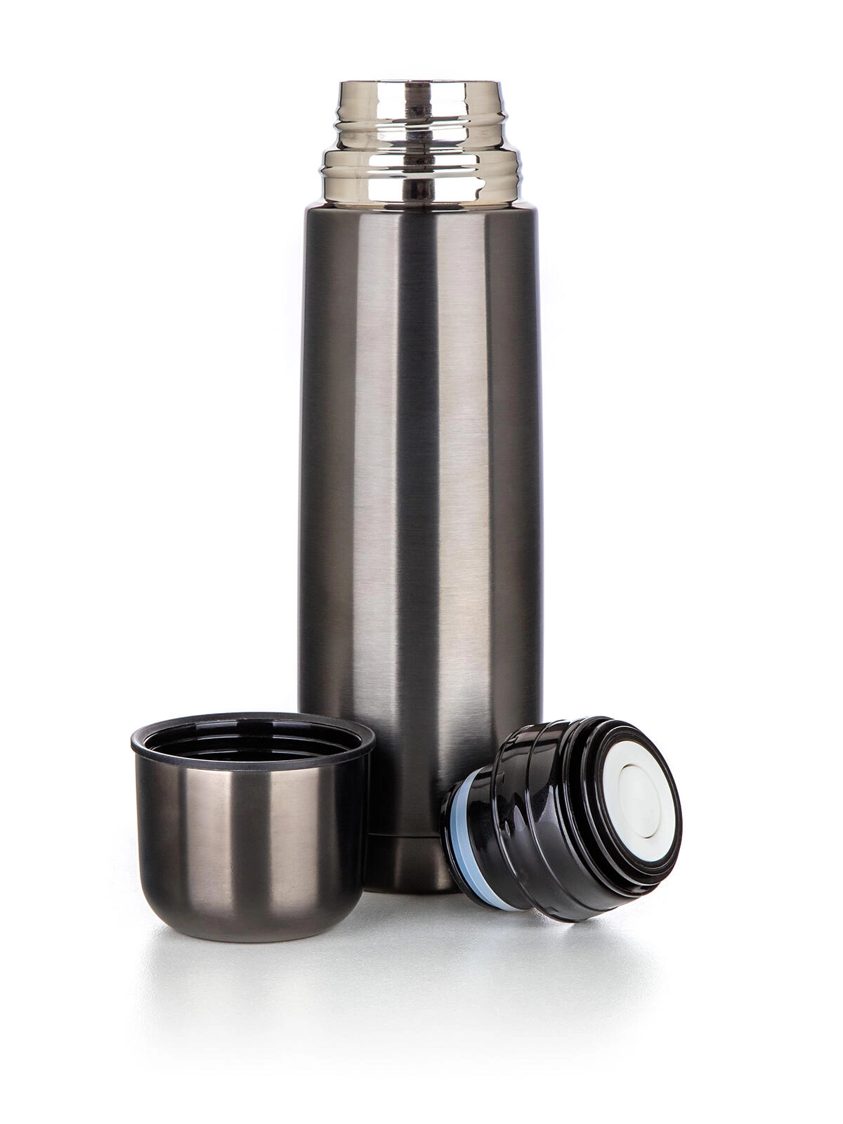 Termoska AVANZA v elegantní metalicky černé barvě je vyrobena z odolné nerezové oceli (vnější i vnitřní povrch). Dvouplášťová vakuová konstrukce účinně omezuje ztráty tepla i chladu, takže si svůj oblíbený nápoj vychutnáte při správné teplotě po delší dobu. Šroubovací uzávěr s tlačítkem umožní bezpečné a pohodlné nalévání bez zbytečného odšroubovávání.