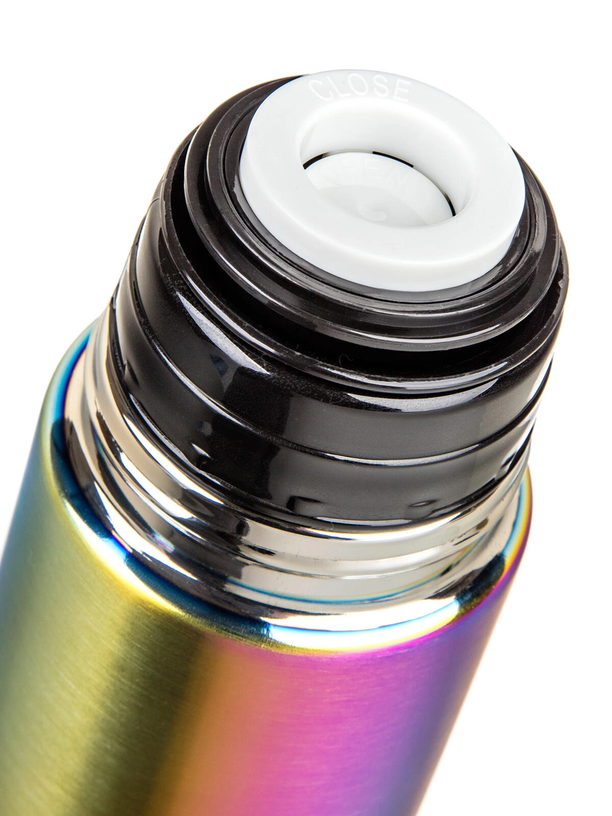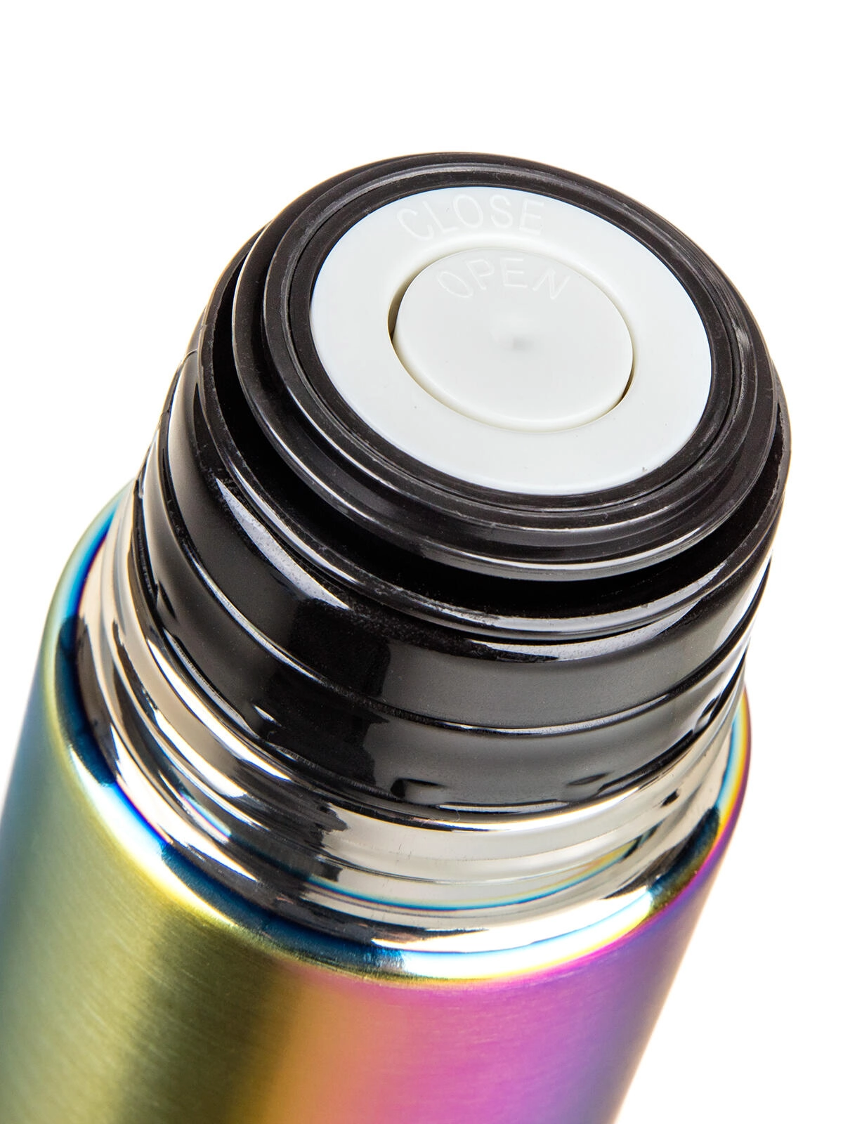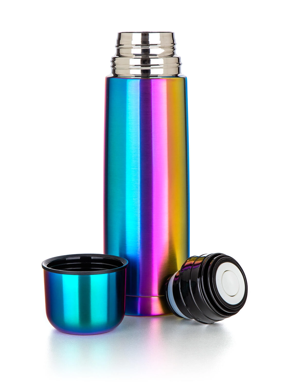 Praktický plastový uzávěr s klipem umožňuje nalévat jedním stiskem – jedním otevřete, druhým zavřete. Víčko slouží jako pohárek, takže hrnek už řešit nemusíte. Eleganci doplňuje duhový matný povrch, který zaujme na první pohled a současně je odolný vůči běžnému opotřebení.
