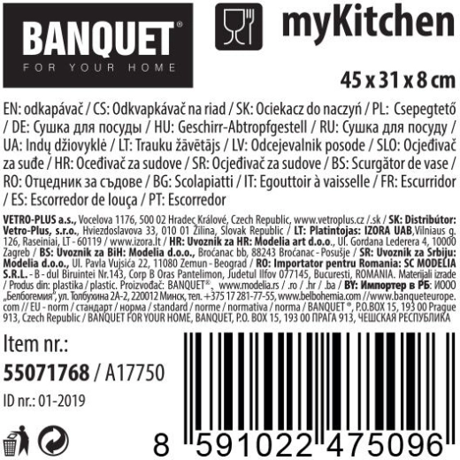 Lehký a odolný plast se snadno čistí a antracitové provedení se hodí do moderních interiérů. Rozměry 45 × 31 × 8 cm poskytují dostatek místa pro každodenní mytí nádobí bez zbytečného zabírání prostoru.