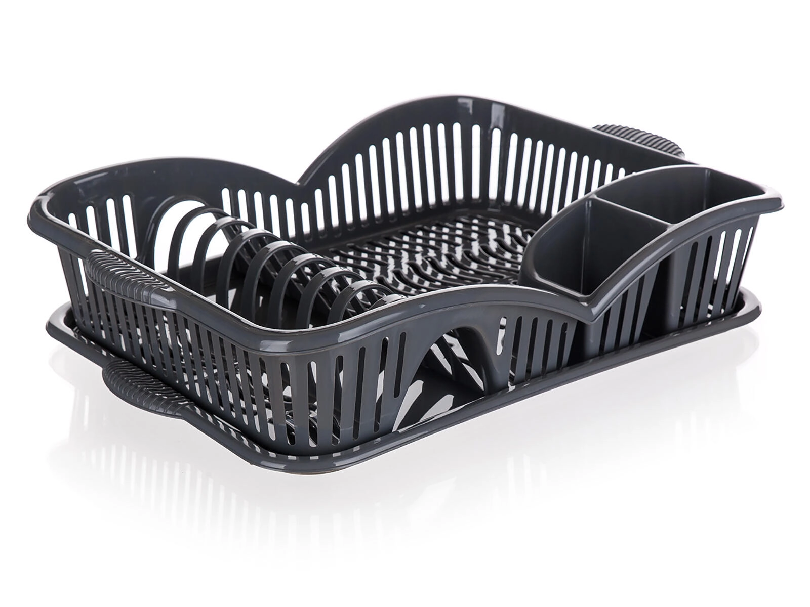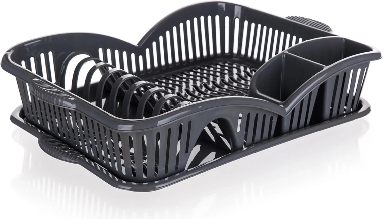 Praktický odkapávač na nádobí myKitchen v elegantní antracitové barvě šetří čas i místo na kuchyňské lince. Nabízí 3 přehledné sekce pro příbory, talíře a ostatní nádobí, má podnos pro zachycení vody a je vyroben z odolného plastu pro snadnou údržbu.
