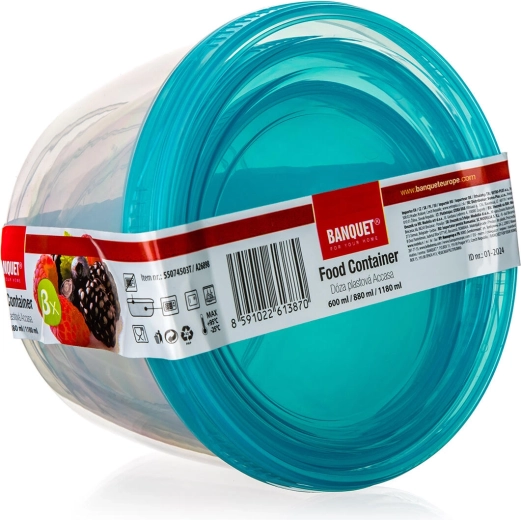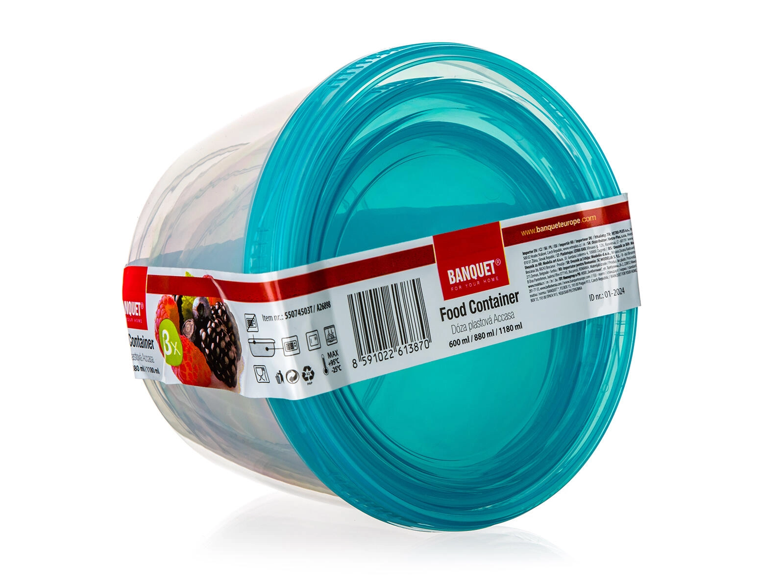 Sada ACASSA přináší univerzální řešení pro skladování potravin doma i na cestách. Tři kulaté nádoby o objemu 600 ml, 880 ml a 1180 ml se postarají o pořádek v lednici, mrazáku i spíži. Díky průhlednému provedení vždy vidíte obsah, zatímco pevná víčka s jistým zacvaknutím pomáhají udržet potraviny déle čerstvé.