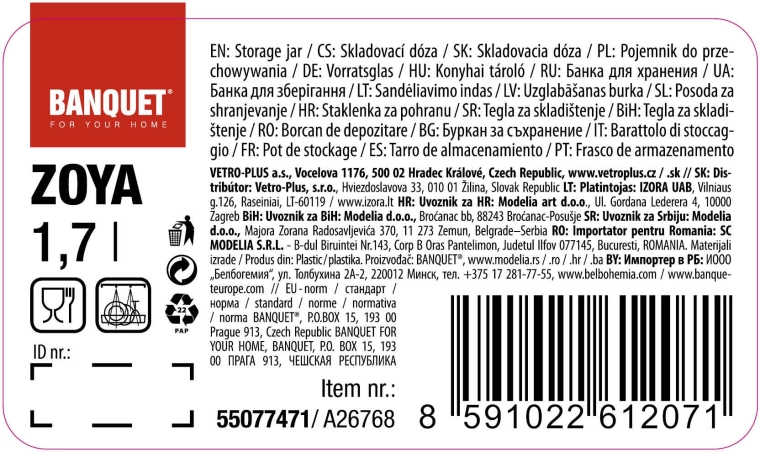 Praktická plastová dóza Zoya o objemu 1,7 l s kouřovým víkem je ideální pro ukládání suchých potravin, jako jsou rýže, těstoviny, cereálie či zavářky do polévky. Díky transparentnímu tělu máte přehled o obsahu a stohovatelný design šetří místo v kuchyni.