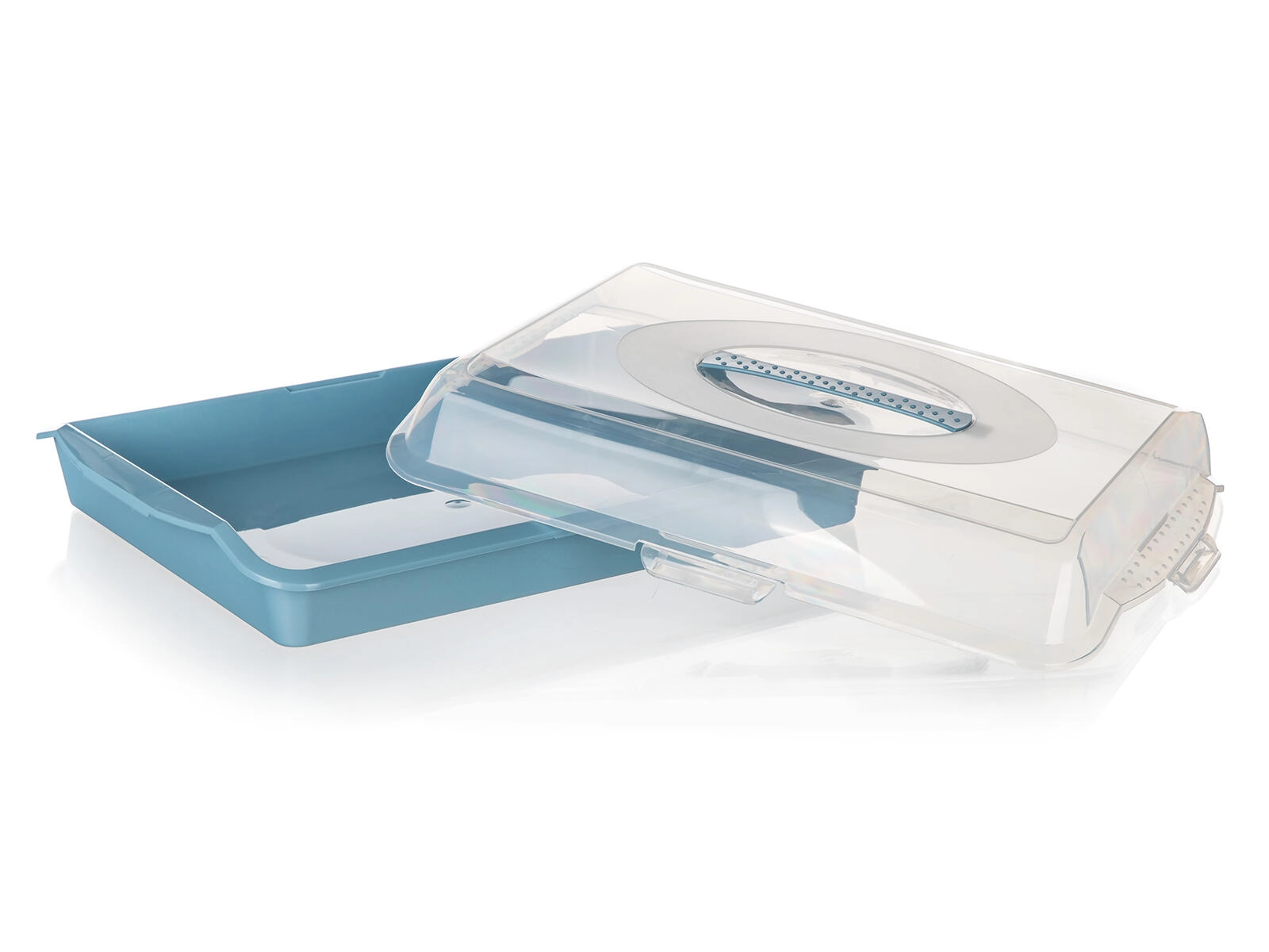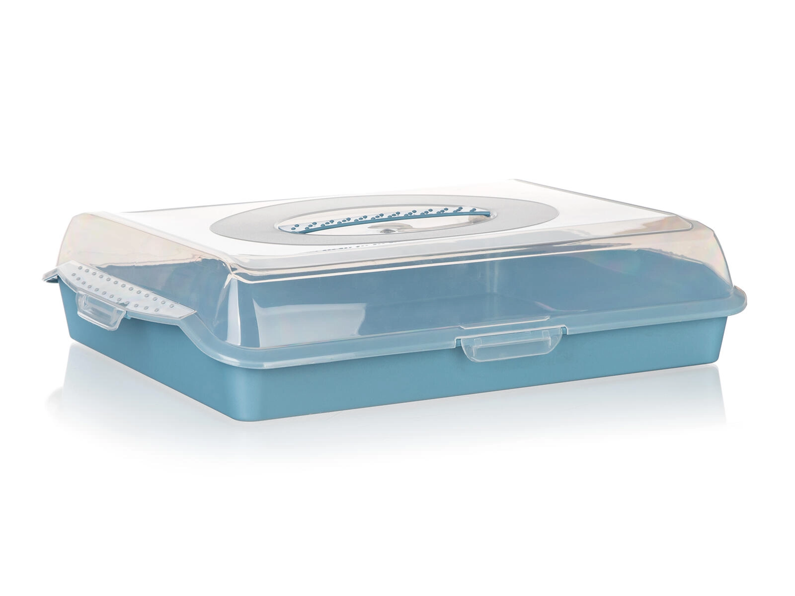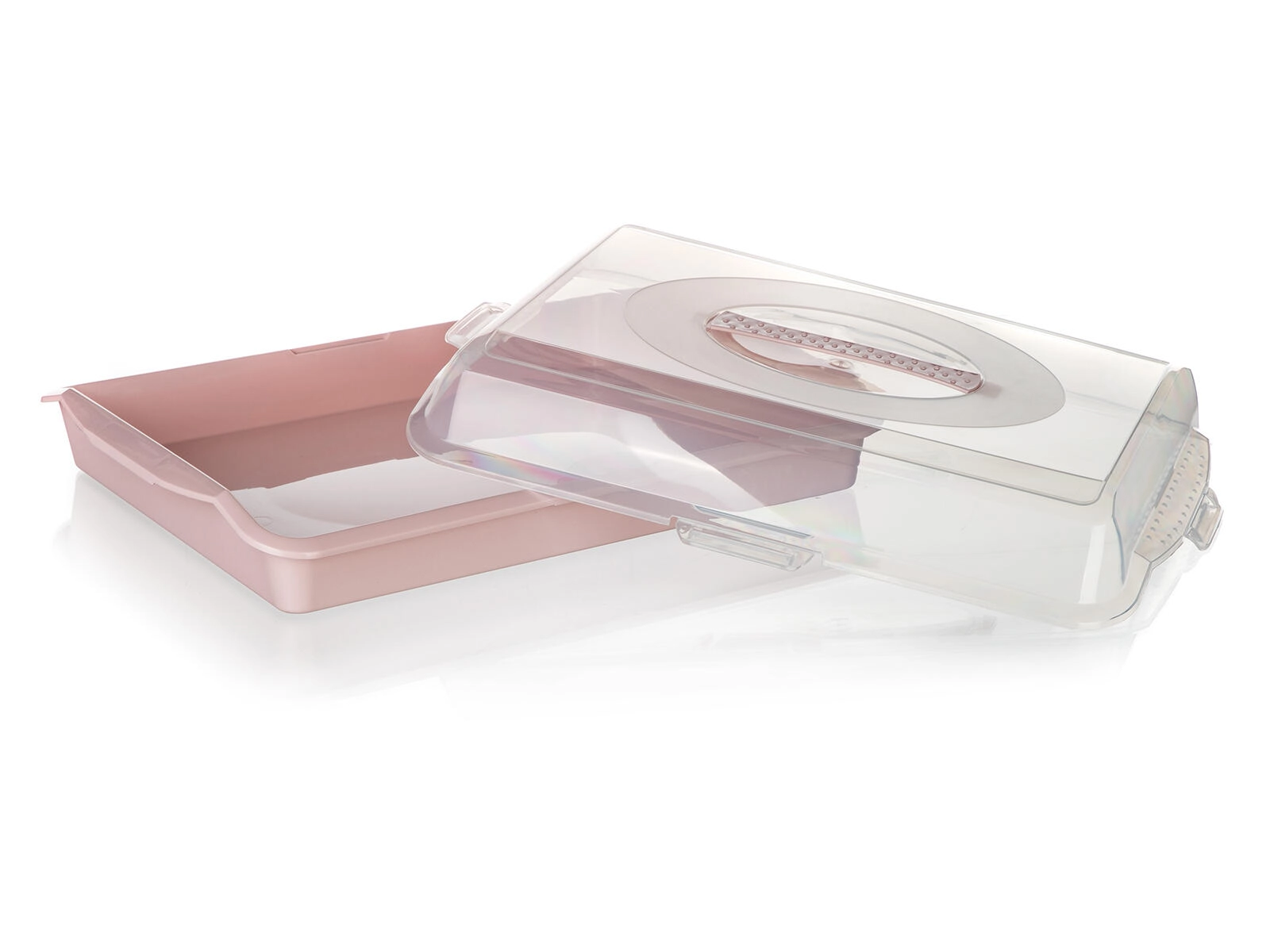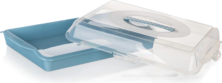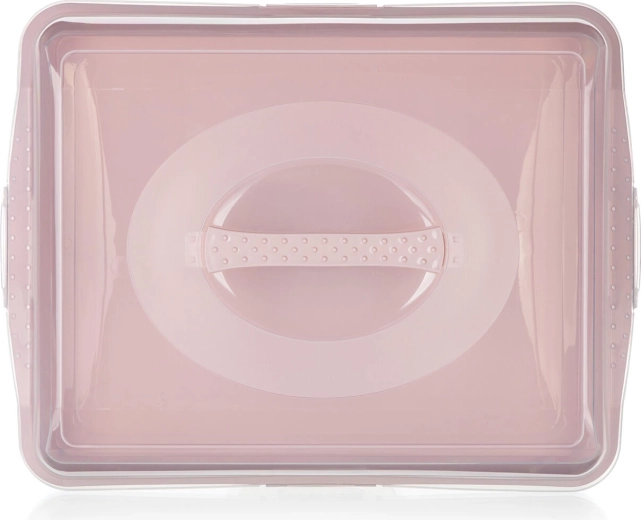 Praktický plastový podnos s víkem Culinaria o rozměrech 45 × 35 × 10,5 cm je ideální pro přepravu a uchování koláčů, dortů a zákusků. Transparentní víko s bezpečnými klipy chrání obsah před prachem a poškozením, zatímco nízký profil umožňuje pohodlné stohování. Dostupný v mixu barev – růžová a modrá.