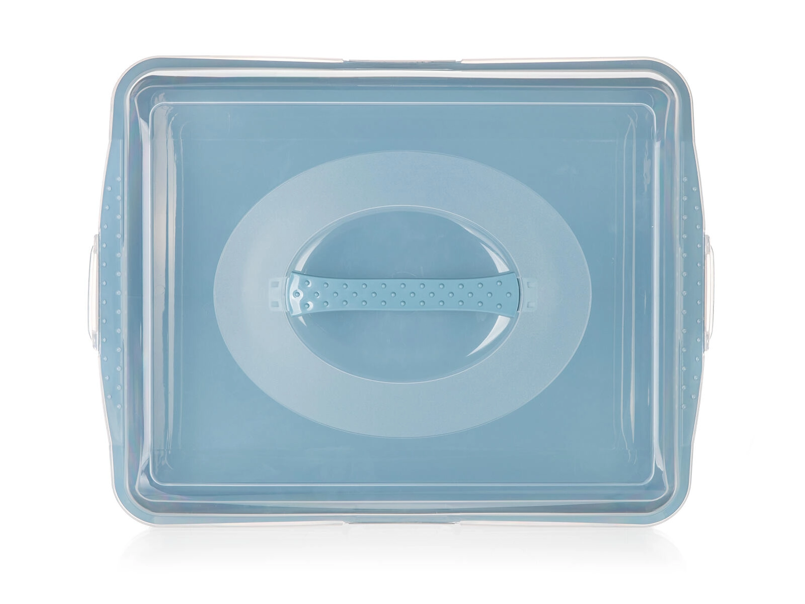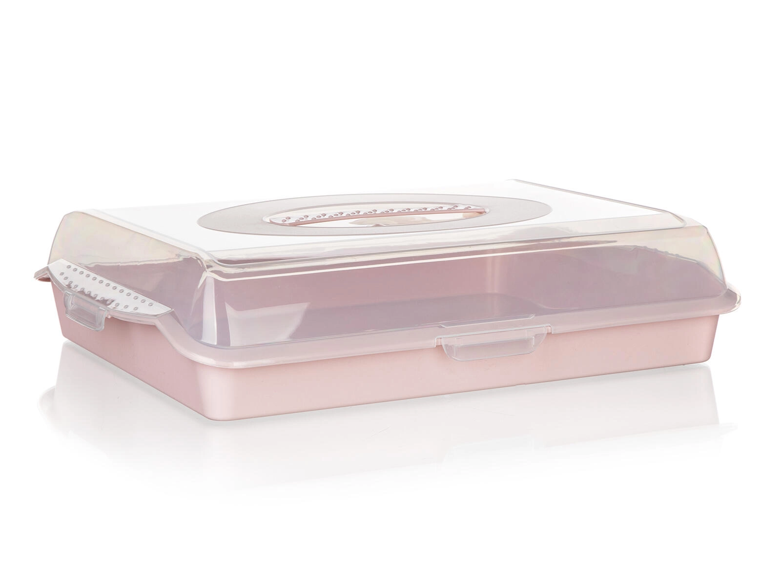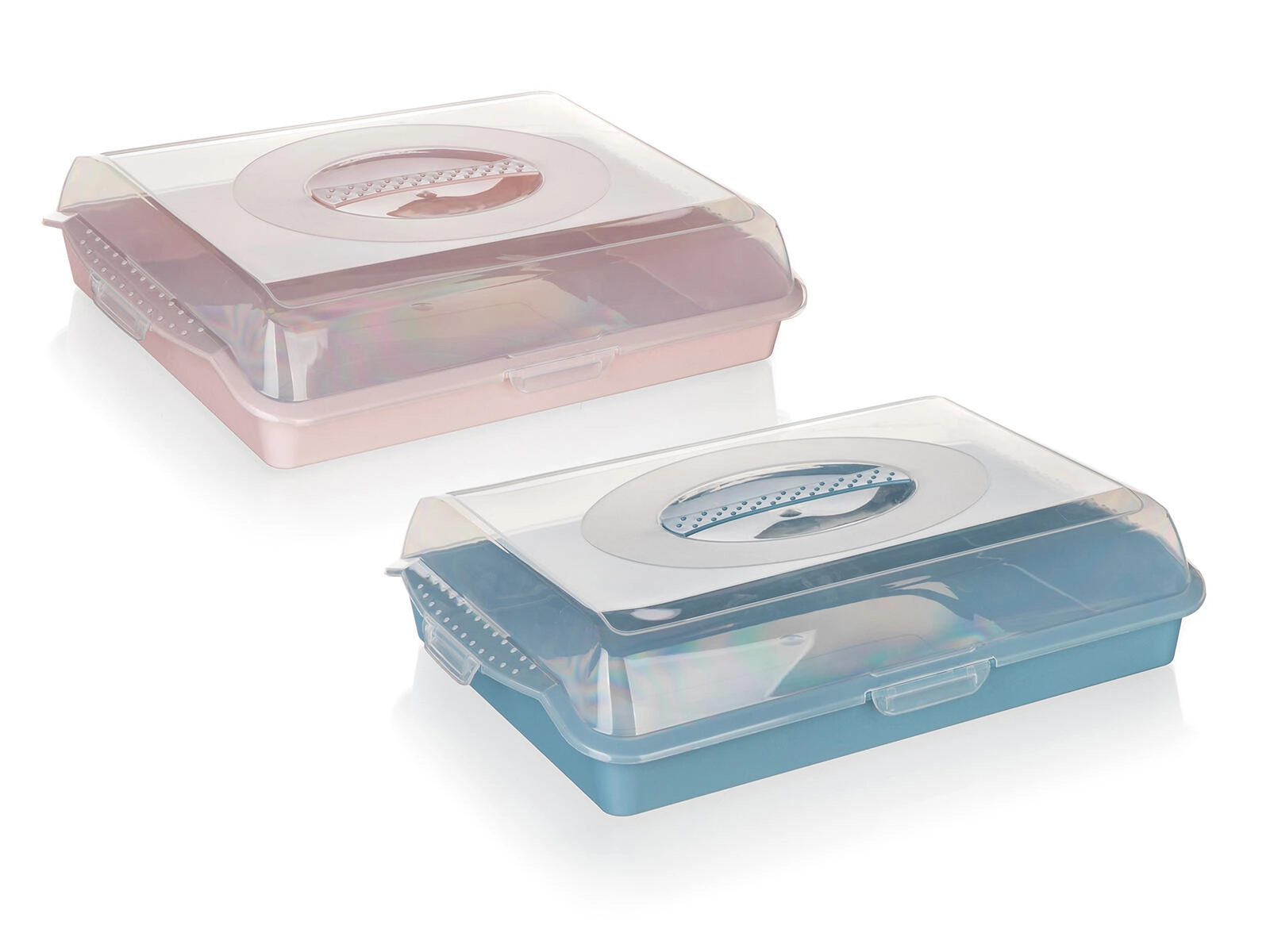 Praktický plastový podnos s víkem Culinaria o rozměrech 45 × 35 × 10,5 cm je ideální pro přepravu a uchování koláčů, dortů a zákusků. Transparentní víko s bezpečnými klipy chrání obsah před prachem a poškozením, zatímco nízký profil umožňuje pohodlné stohování. Dostupný v mixu barev – růžová a modrá.