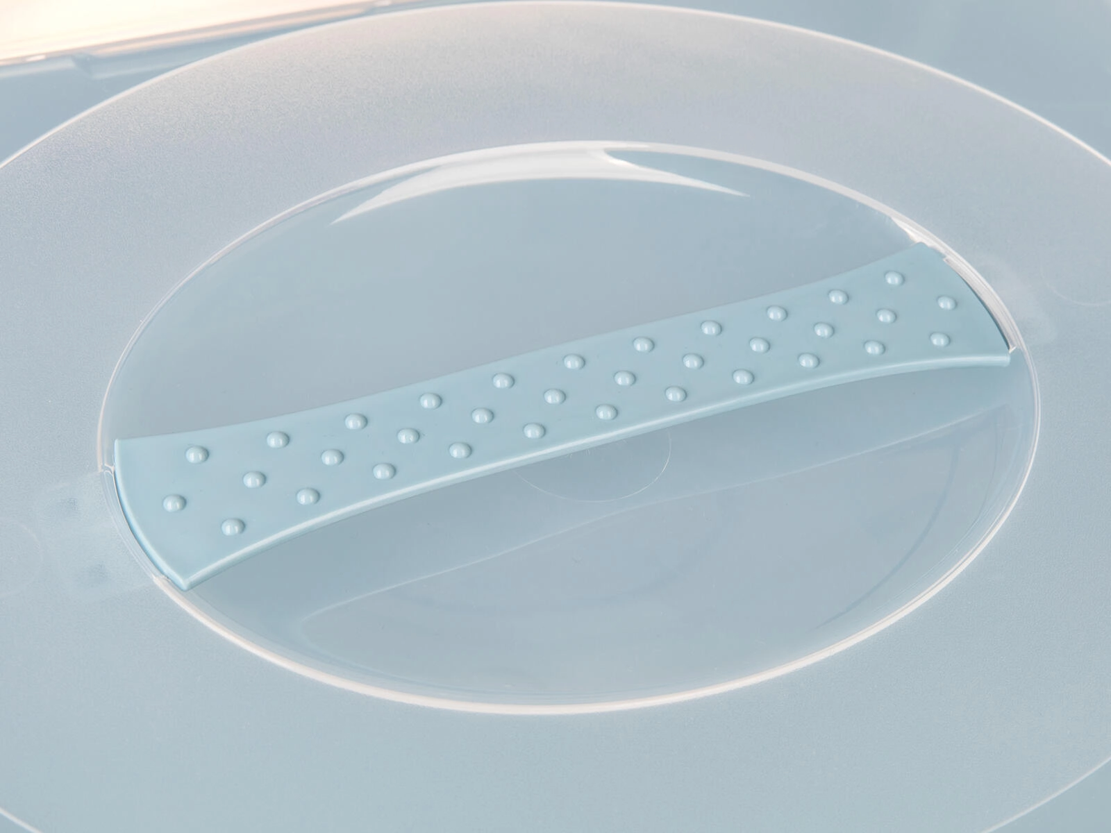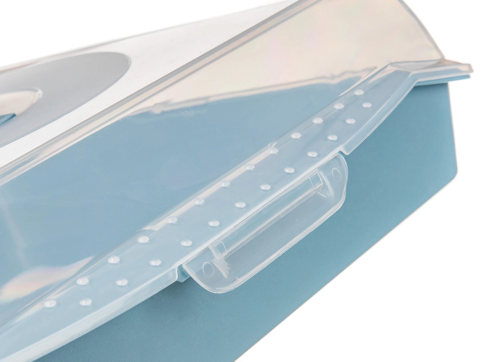 Spolehlivé klipy po stranách udrží víko pevně na místě, takže se dezerty při přepravě neuvolní a zůstanou chráněné před prachem i vlhkostí.