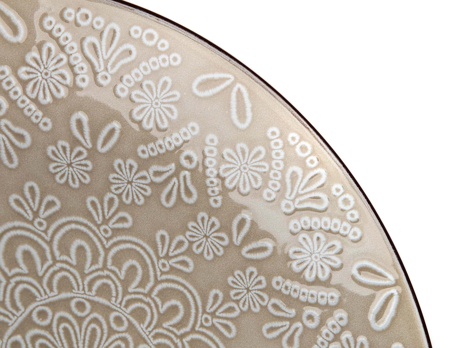 Embosovaný krajkový motiv s tmavším lemem dodává talíři jedinečný charakter a promění každé servírování v estetický zážitek.