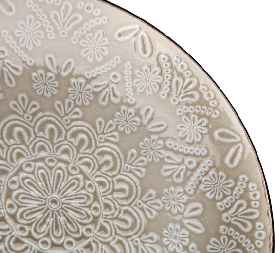 Díky průměru 21,3 cm je talíř perfektní pro dezerty, koláče, předkrmy a menší porce. Hladký glazovaný povrch je příjemný na dotek, reliéf dodává texturu a eleganci a napomáhá bezpečnějšímu uchopení. Pro maximální pohodlí je talíř vhodný do mikrovlnky i do myčky nádobí.