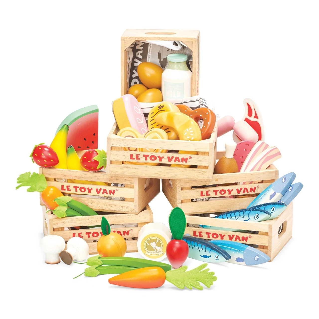 Objevte kouzlo hry na obchod s dřevěnou bedýnkou plnou zeleniny od LE TOY VAN. Pečlivě zpracované kousky jako mrkev, ředkev, žampiony a cuketa podporují představivost, jemnou motoriku a učení o zdravé stravě. Vyrobeno z udržitelného dřeva a malováno netoxickými barvami na vodní bázi – bezpečná volba pro malé ruce.