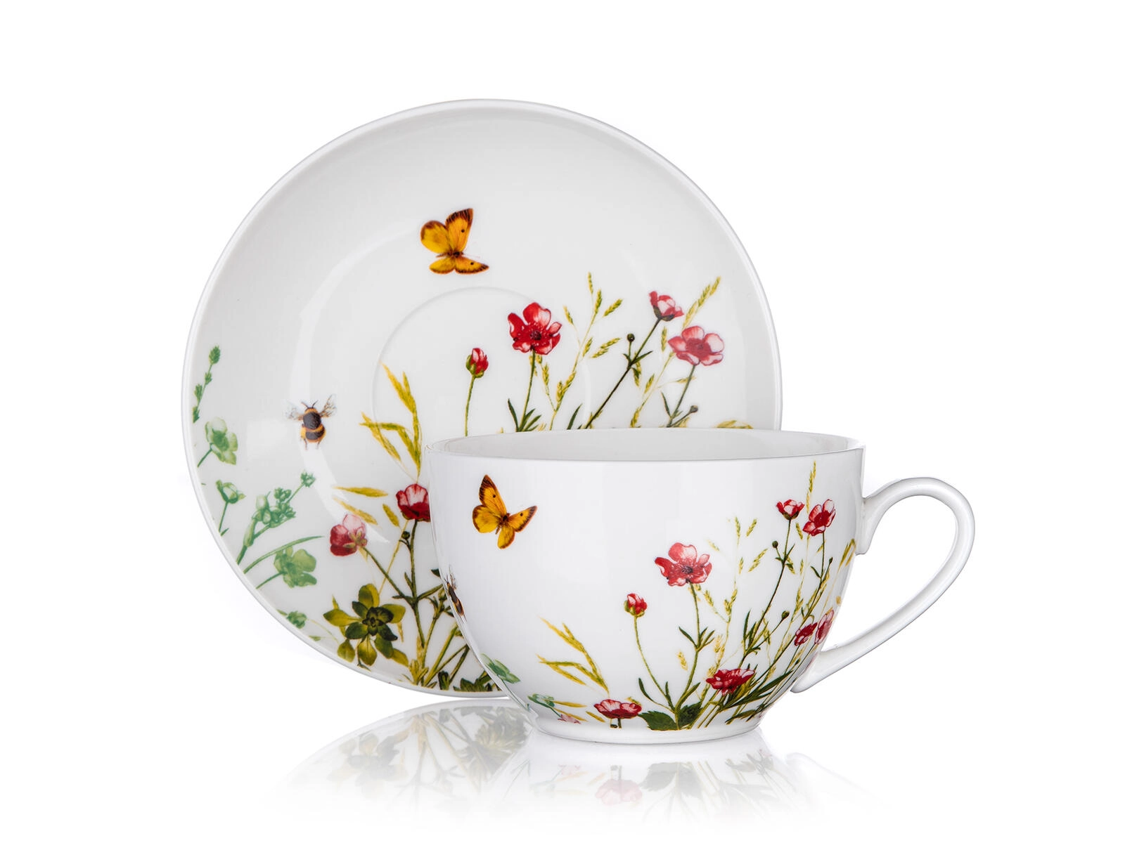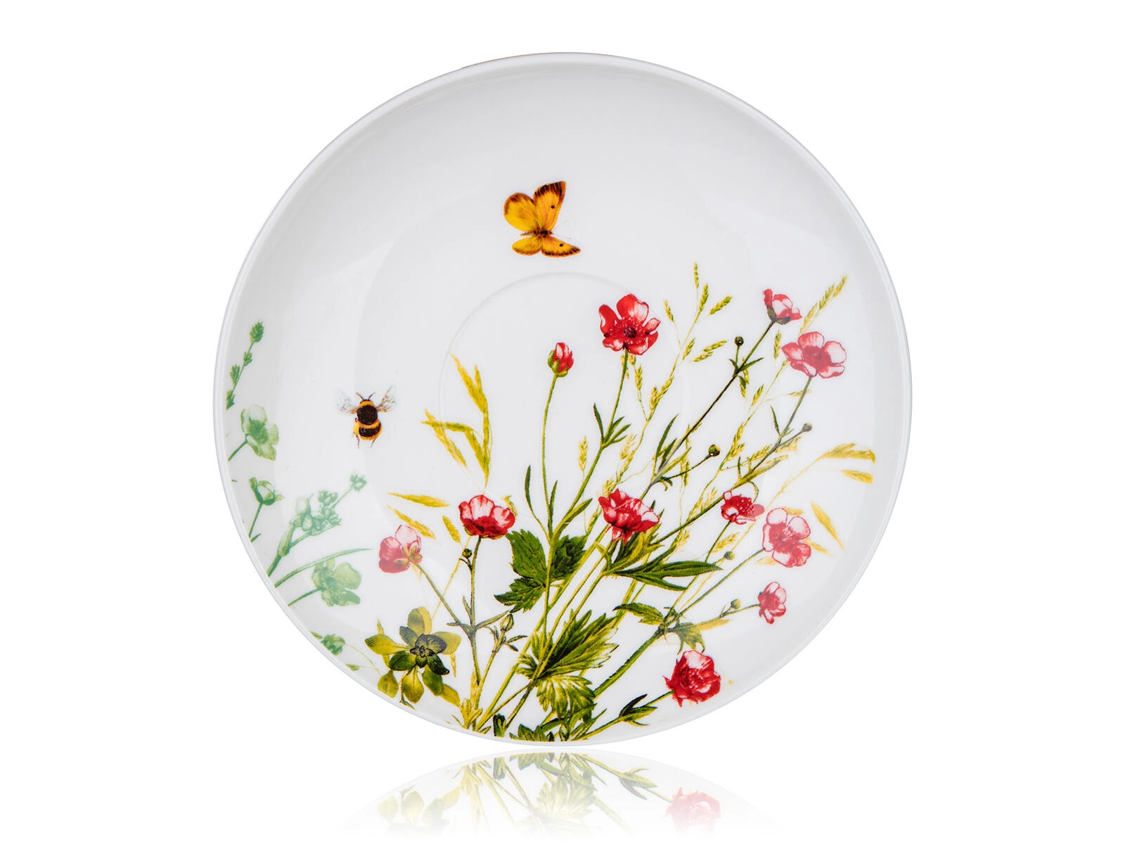 Dekor rozkvetlé louky s motýlem a včelkou dodá vašemu stolování svěžest a přírodní eleganci. Skvěle se kombinuje s dalšími kousky z kolekce.