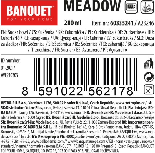 Vneste na stůl svěžest rozkvetlé louky. Keramická cukřenka MEADOW má praktické víčko s úchopem a decentní potisk květin a včelek, který z ní dělá stylový i funkční doplněk pro každodenní používání.