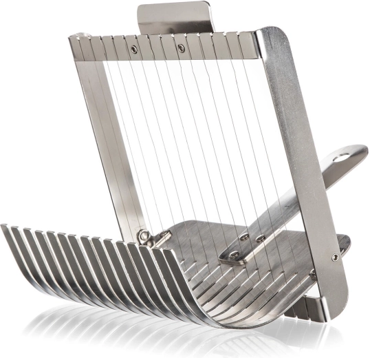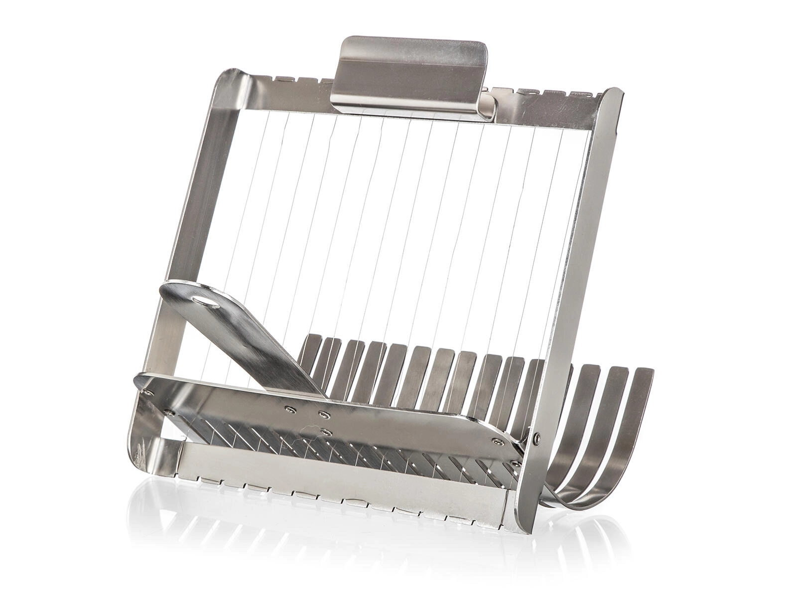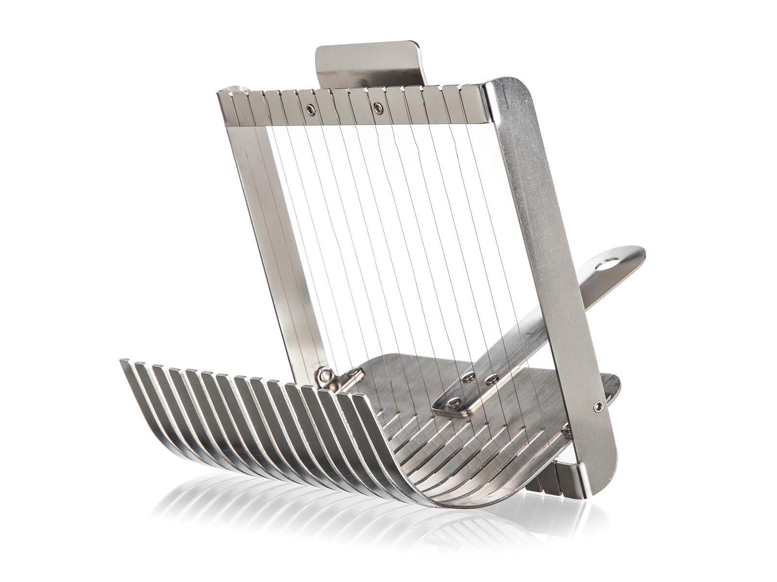 Spolehlivý pomocník pro každý den – strunový kráječ AKCENT je navržen pro profesionální i domácí použití. Robustní nerezová konstrukce odolá častému používání a struny krájí čisté, souměrné plátky bez lepení. Ergonomické provedení s podběrákem urychlí manipulaci s horkými knedlíky a zlepší bezpečnost i komfort při servírování.