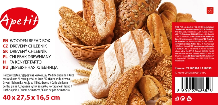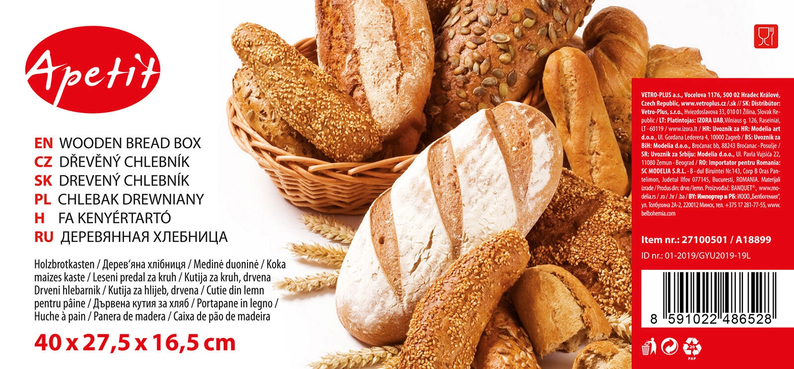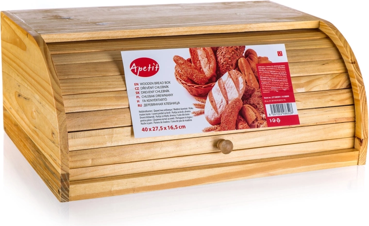 Velkorysé rozměry 40 × 27,5 × 16,5 cm nabízí dostatek prostoru pro každodenní zásobu pečiva. Dřevo přirozeně reguluje vlhkost, čímž pomáhá zabraňovat plesnivění i zbytečnému vysychání.