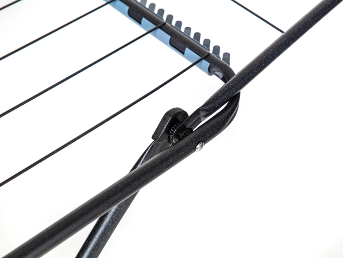 Robustní X-rám s protiskluzovými prvky drží pevně na místě a kolečka usnadňují manipulaci i s naloženým sušákem.