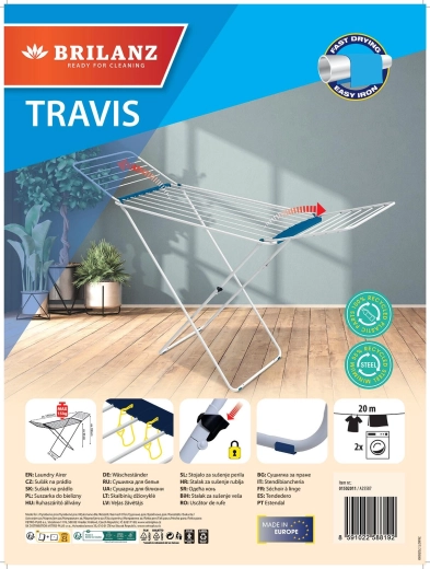 Hledáte spolehlivý sušák na každodenní sušení prádla doma i na balkoně? Tento rozkládací sušák TRAVIS přináší 20 metrů sušicí plochy, což pohodlně vystačí až na dvě pračky prádla. Díky bočním křídlům bez problému usušíte i delší kusy, jako jsou kalhoty, ručníky nebo povlečení.