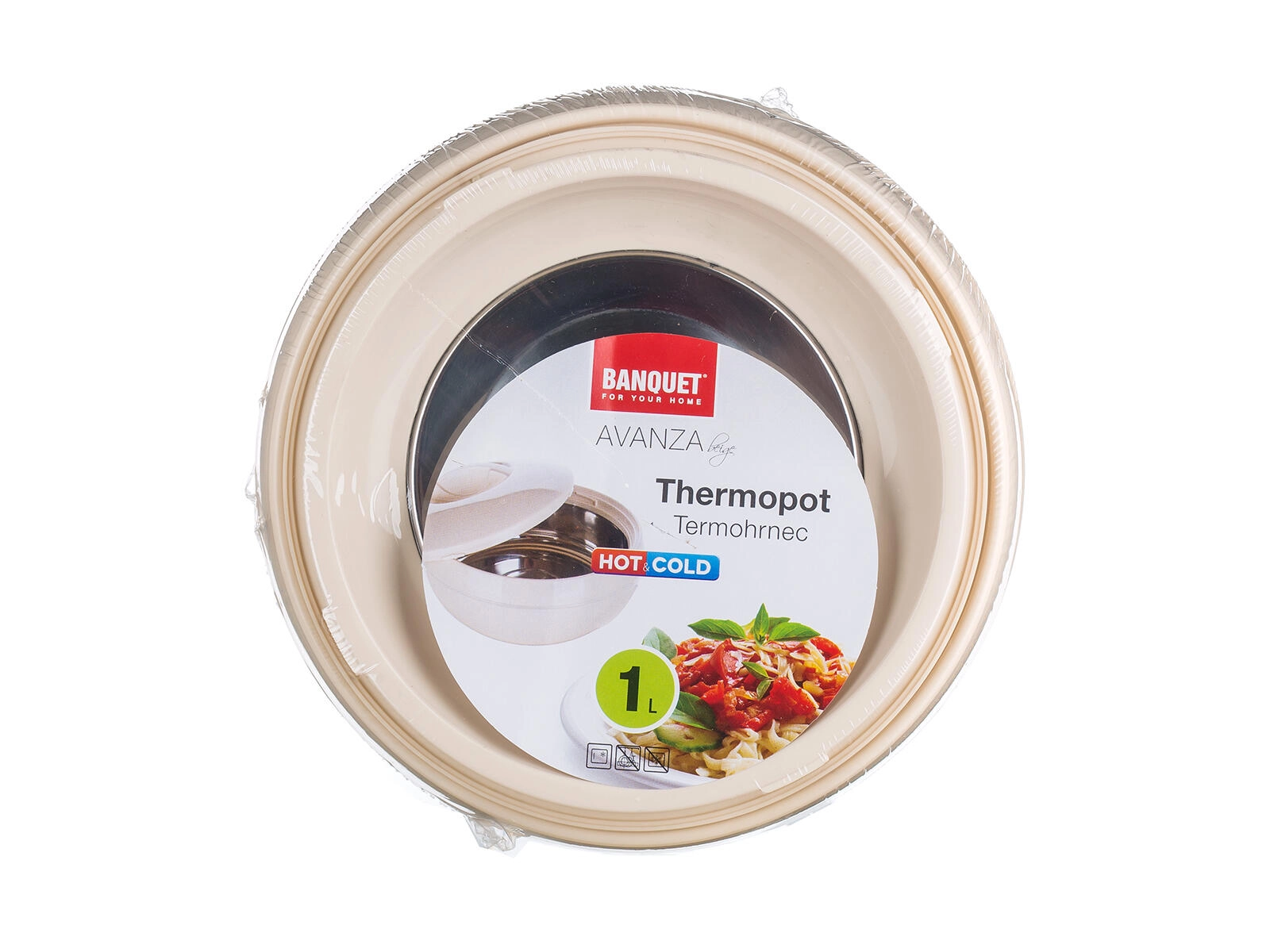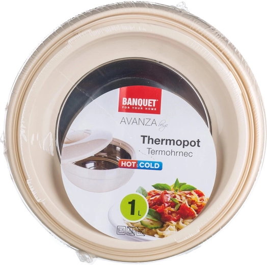 Praktická termomísa s poklicí AVANZA o objemu 1 l udrží vaše pokrmy déle teplé či studené. Kombinuje nerezovou vložku s izolační PUR pěnou a odolným plastovým pláštěm v elegantní béžové barvě – ideální pro servírování i přenášení jídel.