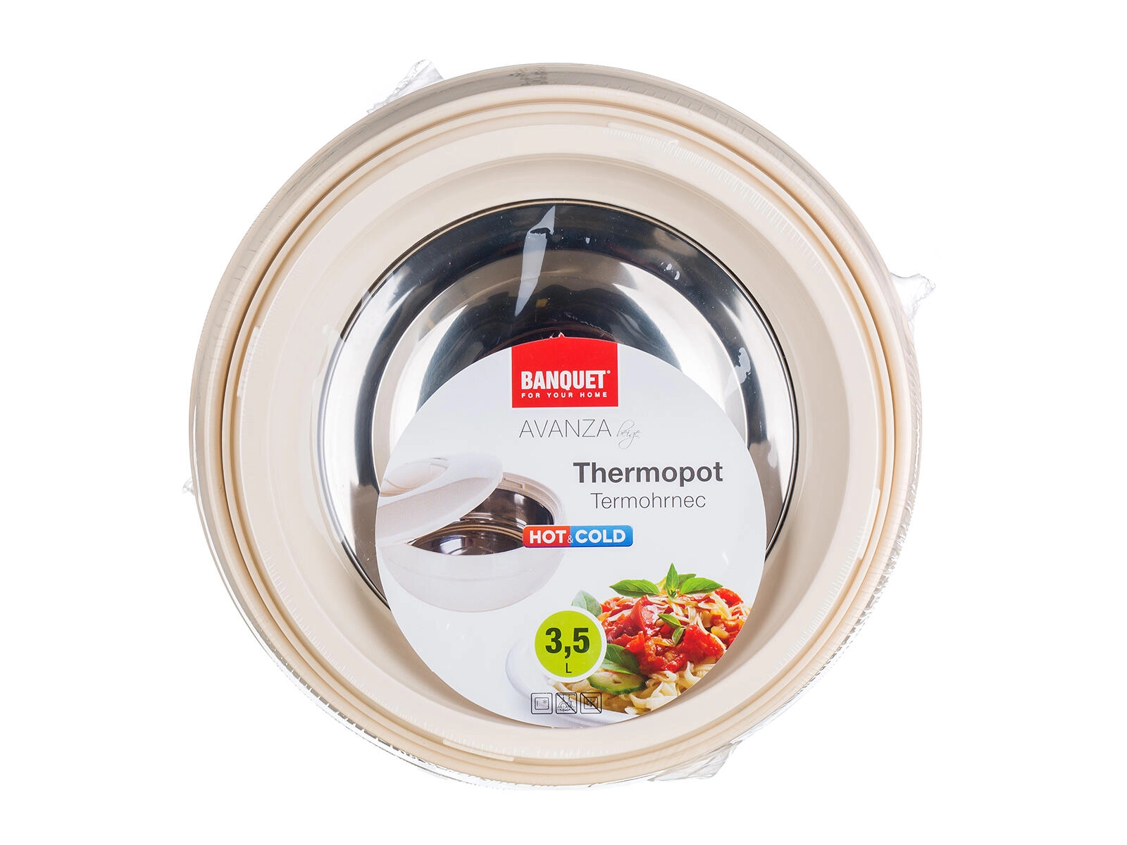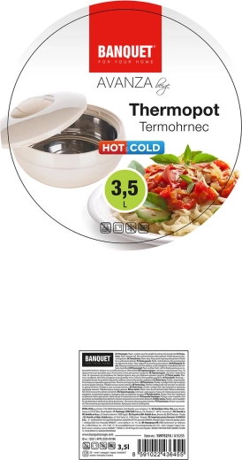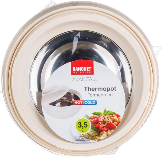 Termomísa AVANZA 3,5 l je spolehlivý pomocník pro uchovávání a servírování hotových jídel. Robustní plastový plášť s PUR izolací a nerezová vnitřní vložka zajišťují dlouhotrvající udržení teploty a snadné čištění. Praktická poklice chrání obsah a usnadňuje bezpečné přenášení.