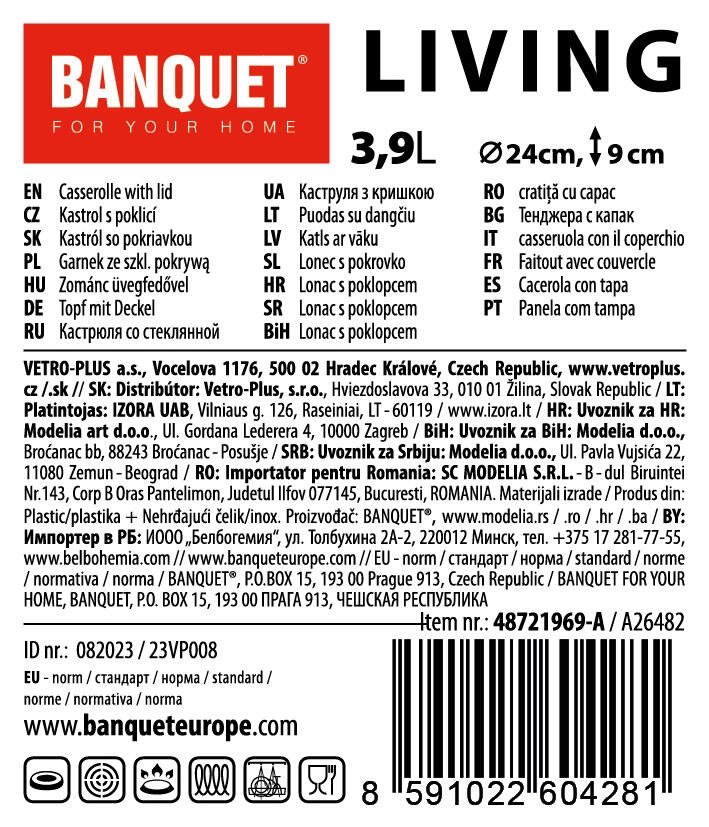 Nerezový kastrol LIVING s objemem 3,9 l je univerzální volbou do každé kuchyně. Díky skleněné poklici máte průběh vaření vždy pod kontrolou a nerezová konstrukce zajišťuje dlouhou životnost i snadnou údržbu. Lesklý povrch s dekorativními matnými pruhy dodá vaší kuchyni elegantní vzhled.