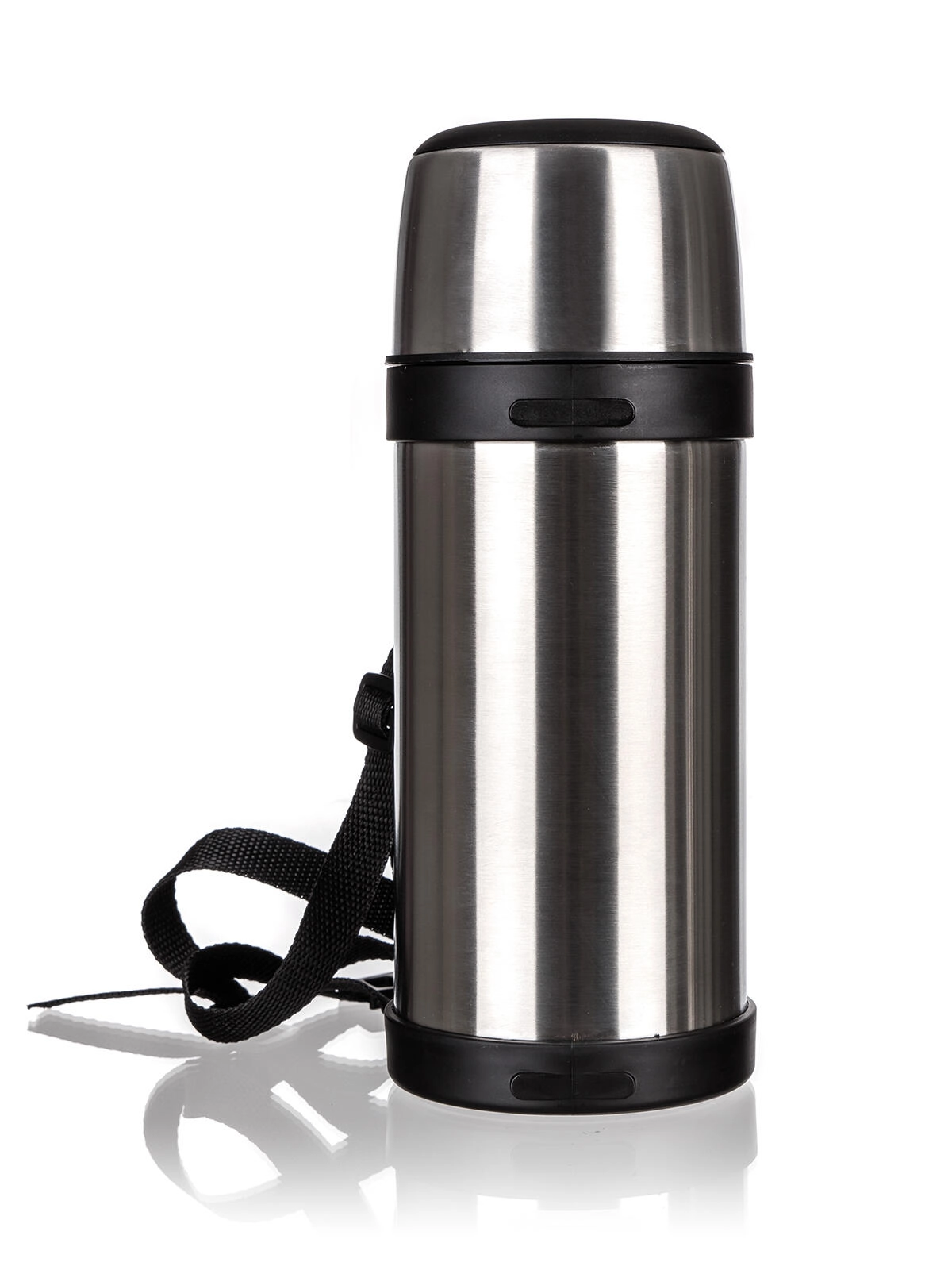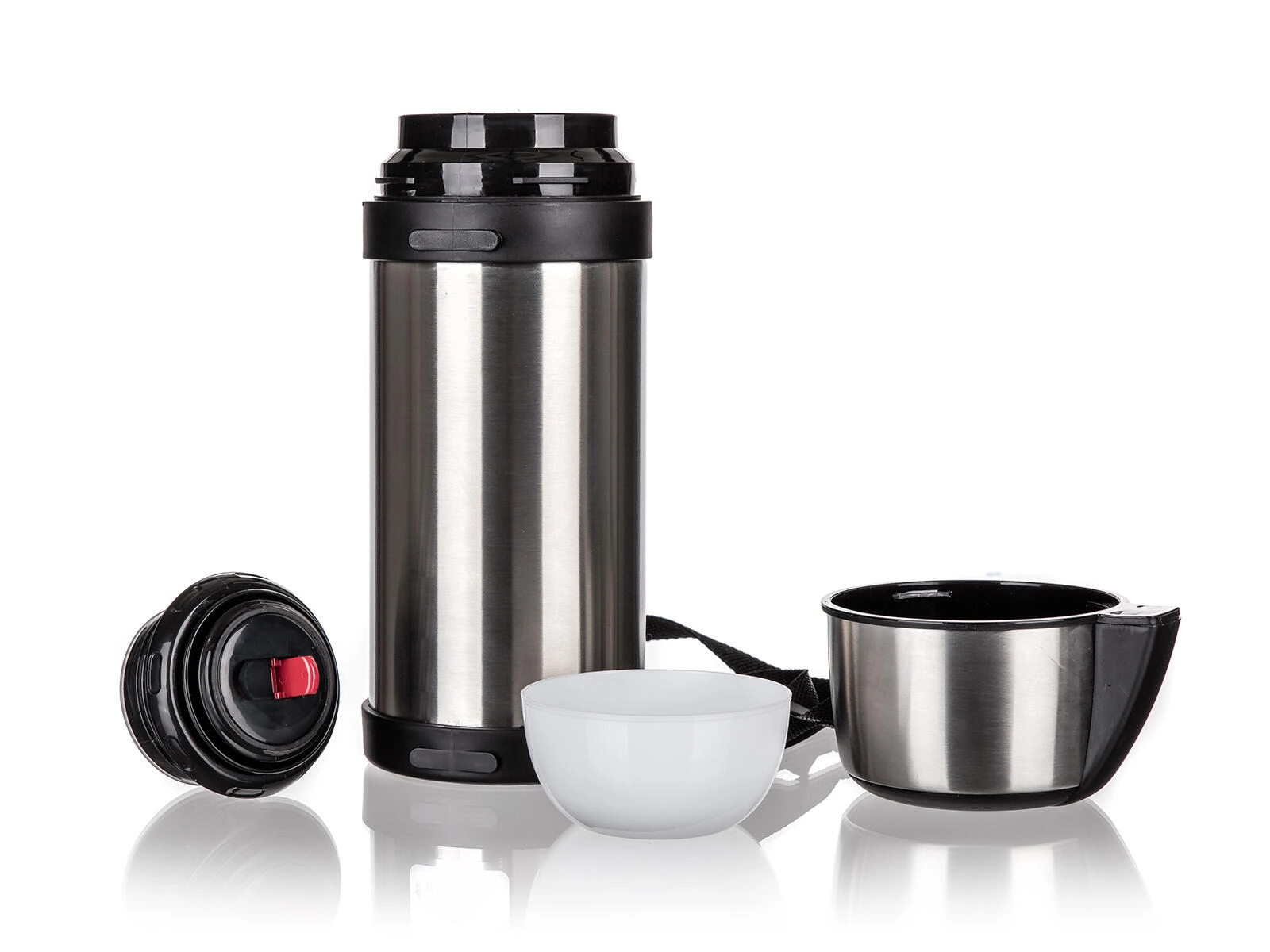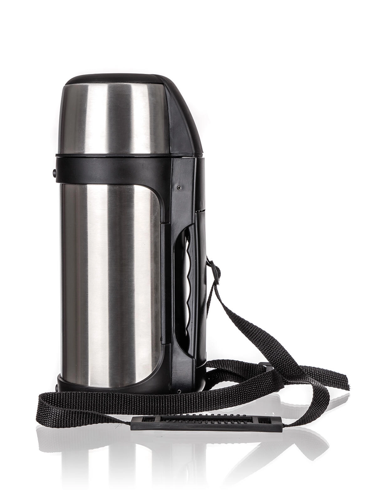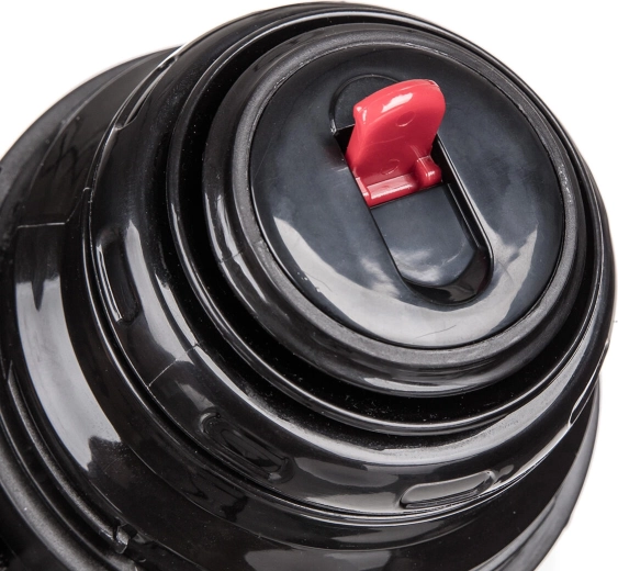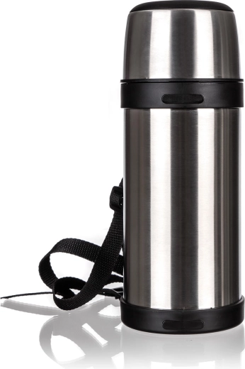 Ergonomické plastové držadlo a odnímatelný popruh zajišťují pohodlné nošení i při delších cestách. Bezpečný plastový uzávěr usnadňuje nalévání a minimalizuje riziko rozlití či opaření. Nerezová konstrukce je odolná vůči nárazům a snadno se udržuje.
