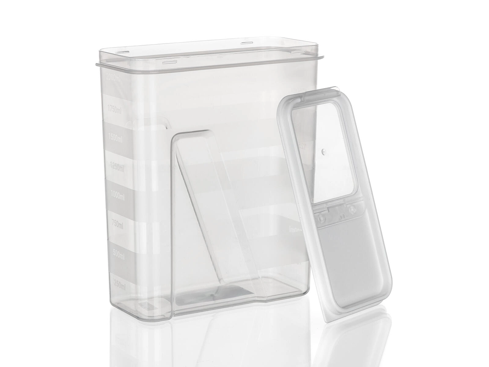 Čiré stěny umožňují okamžitě vidět obsah i zbývající množství. Snadno tak plánujete nákupy a udržujete pořádek ve spíži.