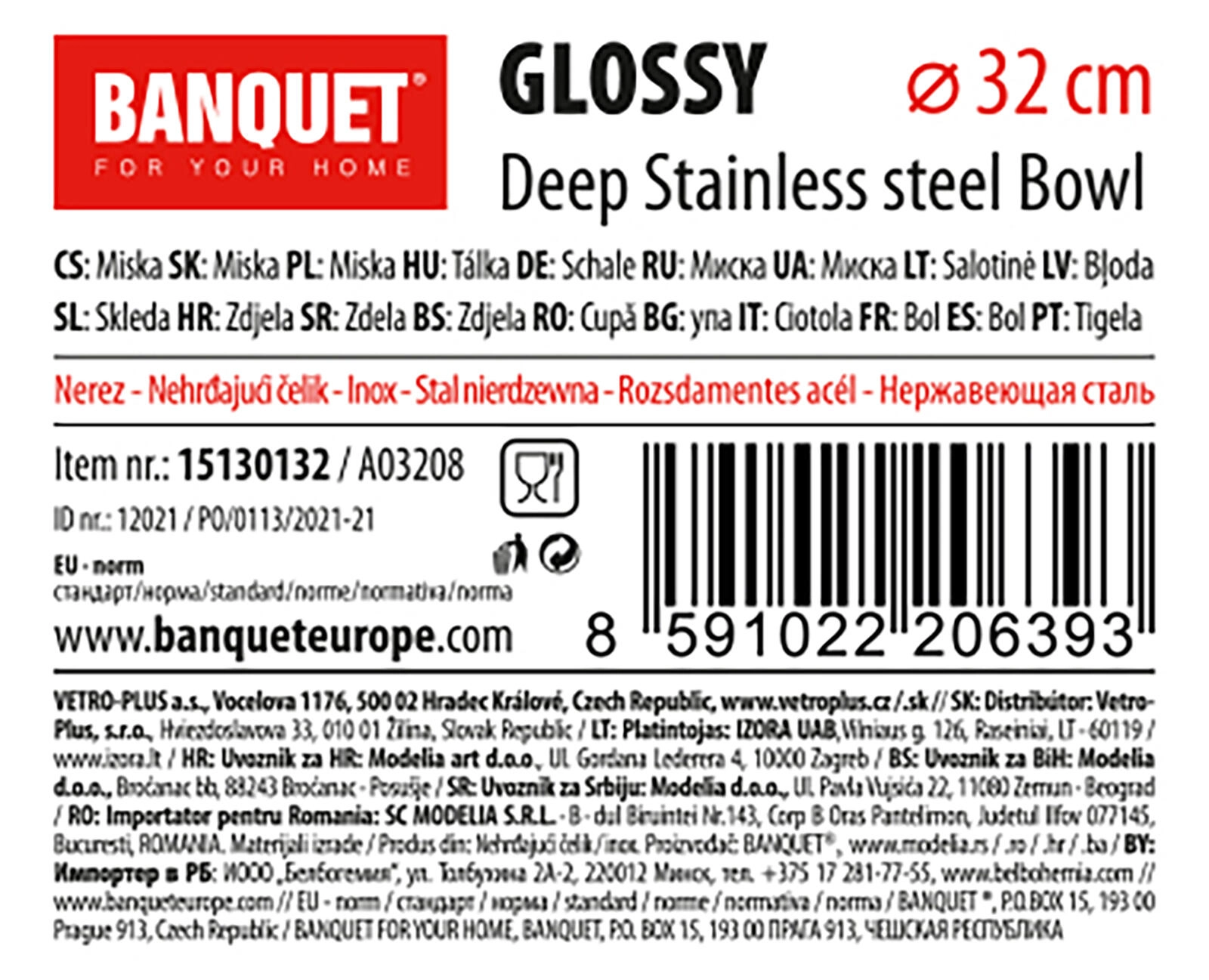Praktická a odolná nerezová miska Glossy s průměrem 32 cm je ideální pro každodenní vaření i pečení. Je hluboká, hygienická a snadno se čistí – je vhodná do myčky nádobí. Tenkostěnná konstrukce s tloušťkou 0,3 mm usnadňuje manipulaci.
