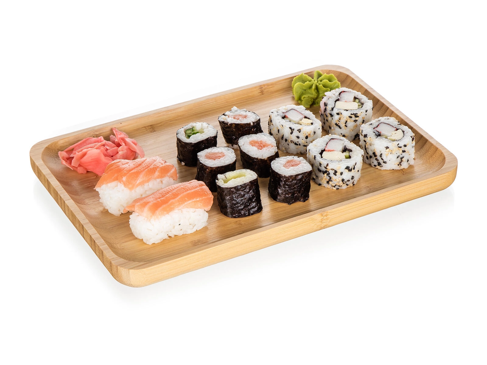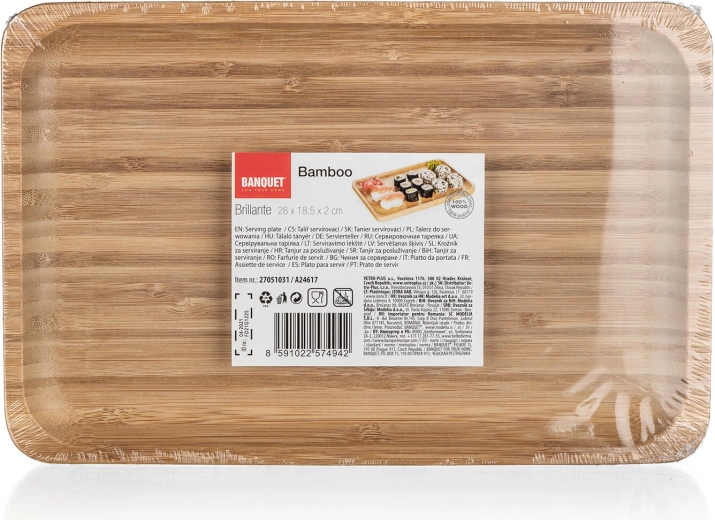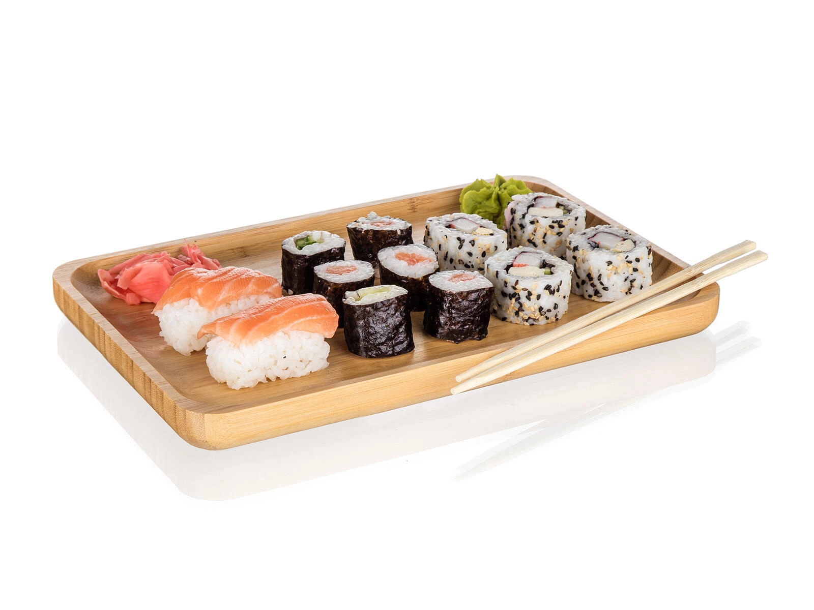 Rozměr 28 × 18,5 cm poskytne dostatek prostoru pro různé pochutiny. Skvěle se hodí k servírování sushi setů, sýrů či sladkých dobrot.