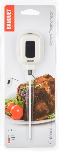 Teploměr je lehký, skladný a snadno se ovládá. Díky plastovému tělu v krémové barvě a kvalitnímu zpracování se stane spolehlivým pomocníkem v každé kuchyni – od každodenního vaření po sváteční pečení.