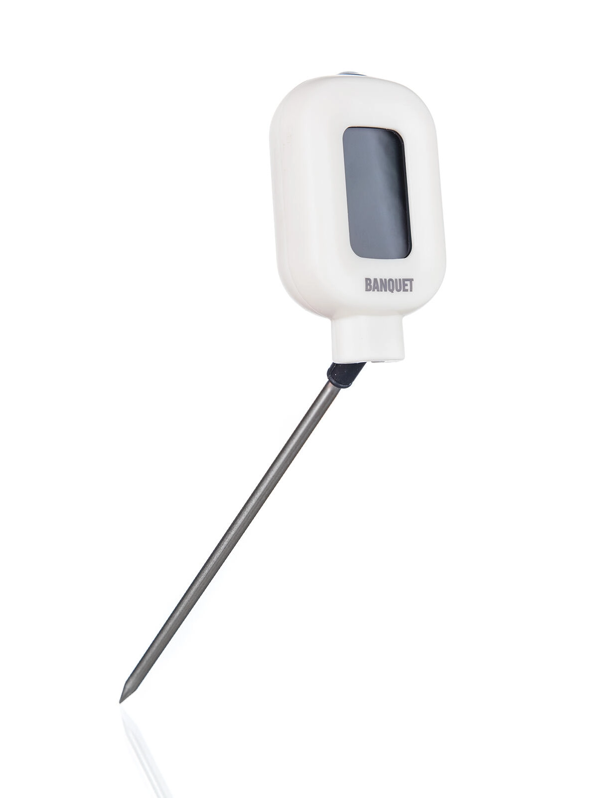 Upečte šťavnaté maso a připravte dokonale propečené pečivo s pomocí přesného digitálního teploměru CULINARIA. Dlouhá nerezová sonda snadno pronikne do středu pokrmu a na digitálním displeji okamžitě uvidíte aktuální teplotu. Rozsah -30 až 250 °C pokryje vše od čokolády a omáček až po steaky či pečivo.