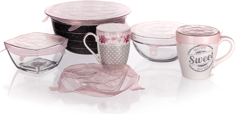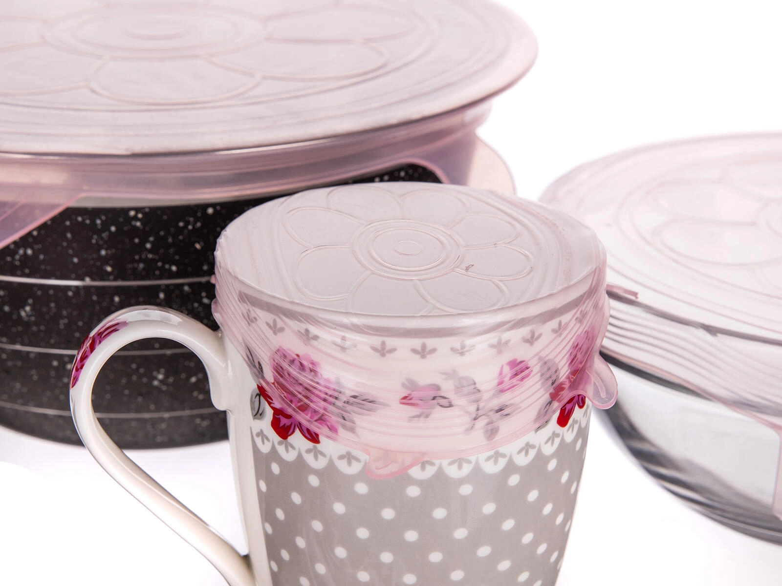 Šest velikostí pokryje hrnky, sklenice, misky i velké mísy – víčka se snadno natáhnou a přilnou k různým tvarům.