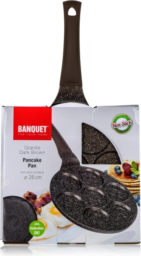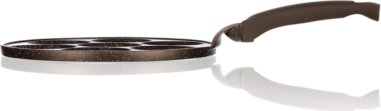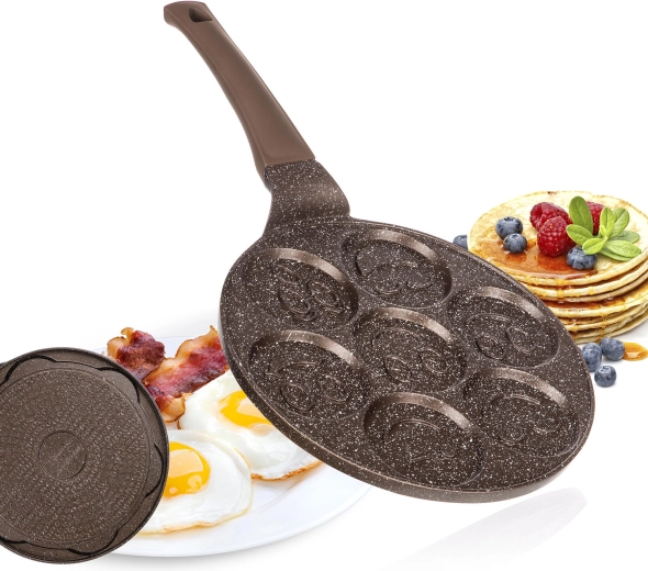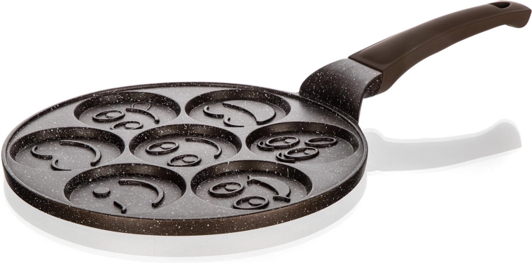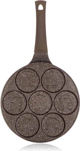 Tento kvalitní lívanečník z litého hliníku s dvojvrstvým nepřilnavým povrchem v hnědém mramorovém designu je ideální pro rychlou a zdravou přípravu lívanců, bramboráčků či vajec. Sedm kulatých forem se smiley reliéfem promění každé ráno v zábavu a zajistí rovnoměrně kulaté porce.