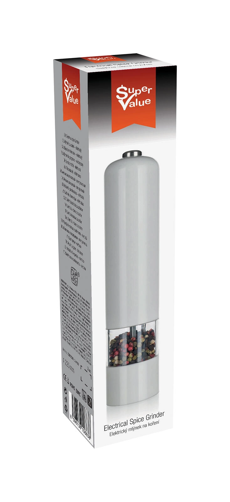 Elektrický mlýnek na koření SUPER VALUE je praktický pomocník do každé kuchyně i na jídelní stůl. Minimalistické provedení s průhledným středem se hodí do moderní domácnosti, zatímco keramická mlecí mechanika spolehlivě zvládne pepř, sůl i další koření bez nežádoucího opotřebení.