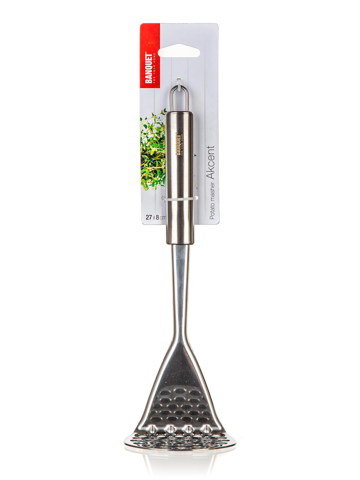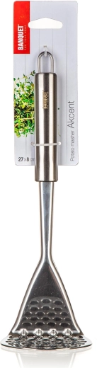 Šťouchadlo na brambory AKCENT z nerezové oceli je spolehlivý pomocník pro přípravu jemné bramborové kaše i dalších příloh. Odolný materiál zajišťuje dlouhou životnost a jednoduchý, funkční design se hodí do každé kuchyně.