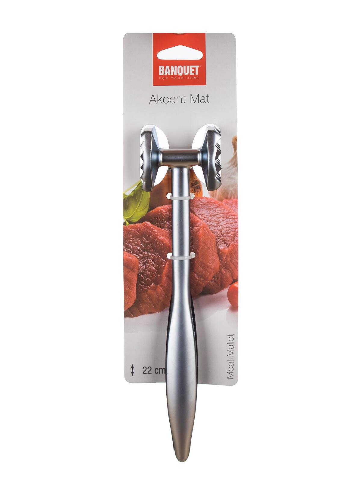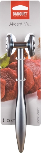 Oboustranná palička na maso AKCENT je spolehlivý pomocník pro přípravu řízků, minutek i steaků. Jedna strana hlavy je texturovaná pro účinné změkčení vláken, druhá je hladká pro rovnoměrné naklepání a zarovnání plátků. Matná povrchová úprava hliníku zajišťuje odolnost a snadné čištění.