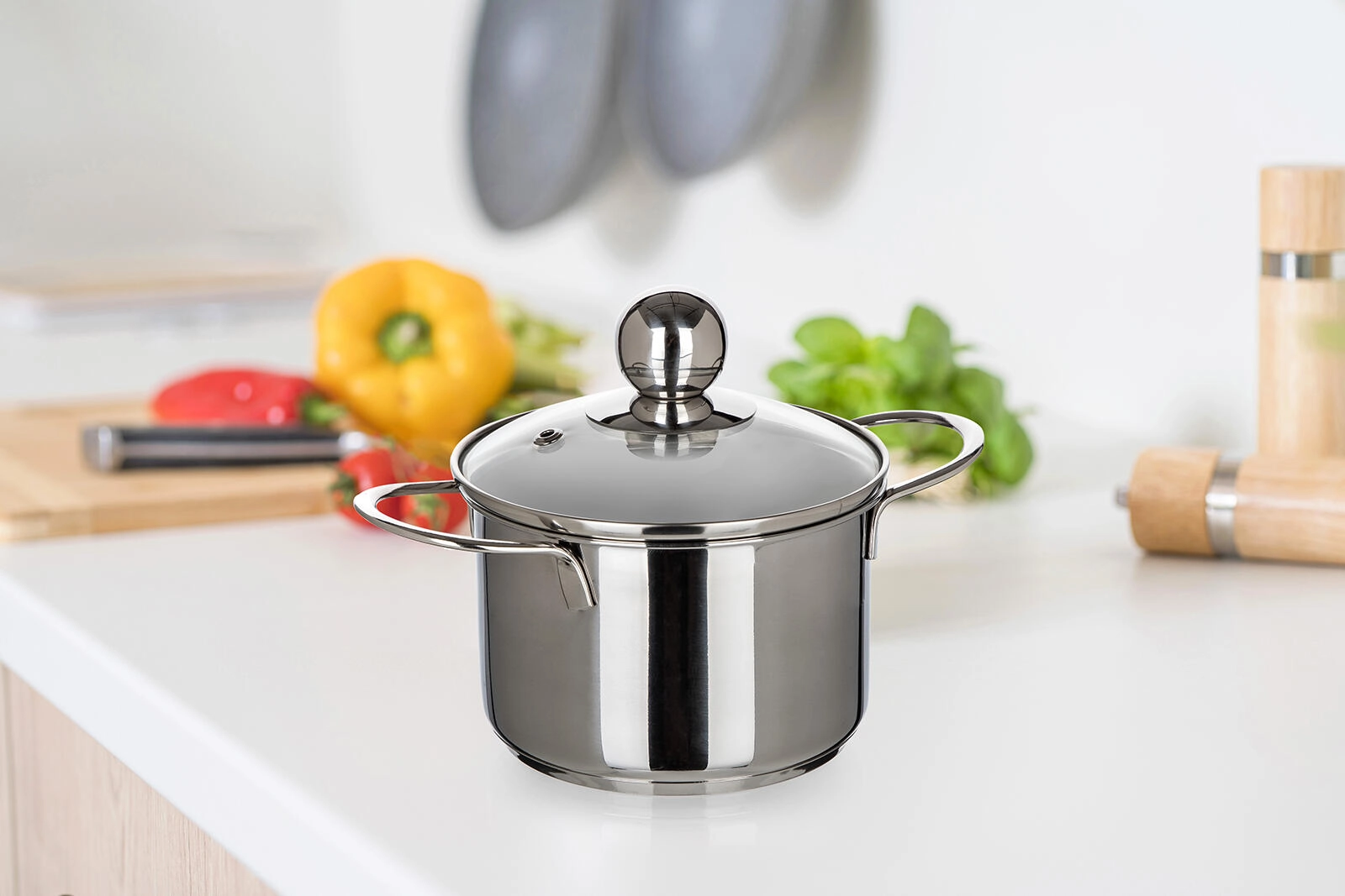 Praktický a elegantní pomocník do každé kuchyně: nerezový hrnec PICCOLO s objemem 0,85 l zvládne rychlý ohřev i jemné provaření. Průměr 12 cm a výška 8 cm z něj dělají skvělou volbu pro malé porce, dětská jídla, omáčky či rozpouštění másla a čokolády. Skleněná poklice se samoodvětrávacím otvorem umožňuje kontrolu pokrmu bez zbytečného zvedání víka.