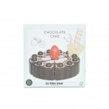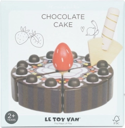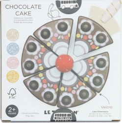 Naservírujte dětem i hostům lahodný dřevěný čokoládový dort od LE TOY VAN. Ručně malované kousky v odstínech hnědé s dekoracemi a jahodou na vrchu se spojují na suchý zip, takže je lze snadno krájet a servírovat. Hračka z udržitelného dřeva s netoxickými barvami podporuje jemnou motoriku, zručnost a představivou hru na role.