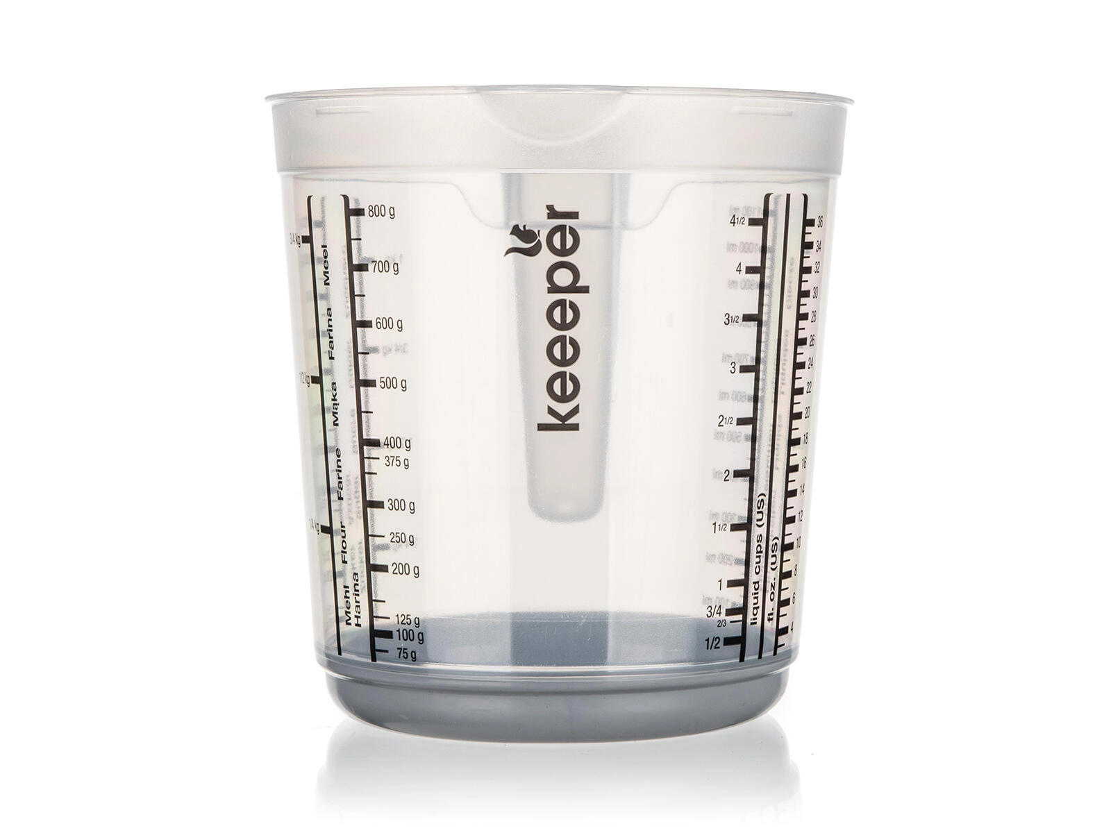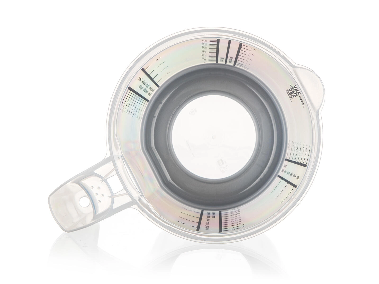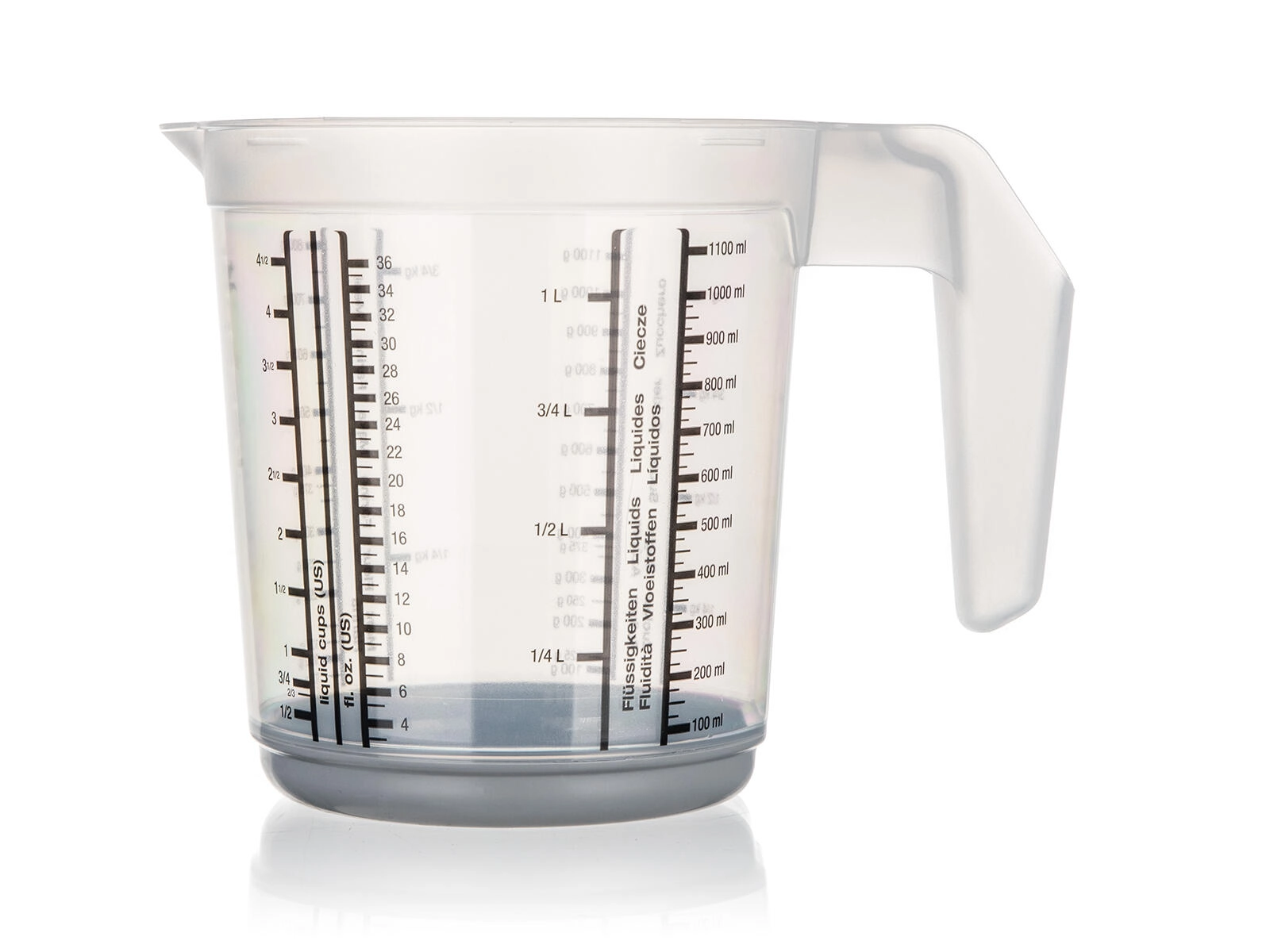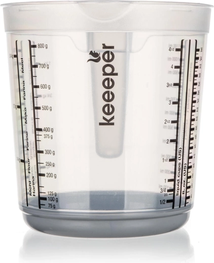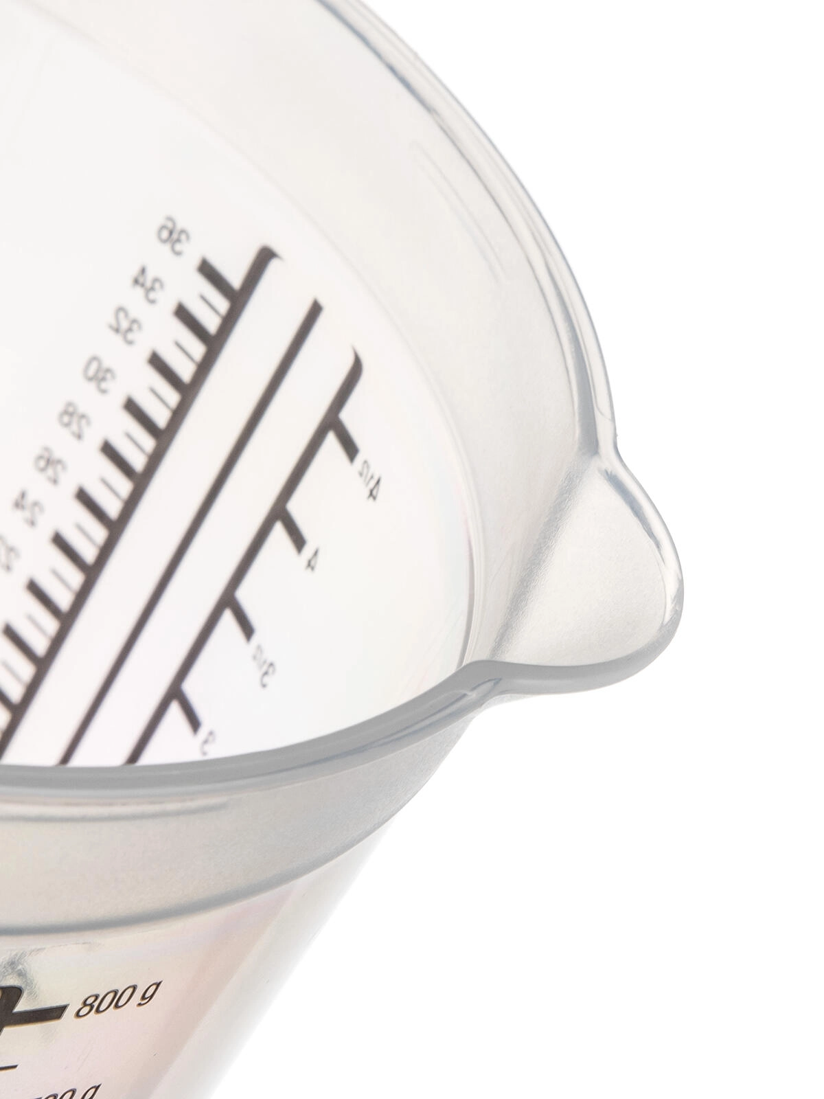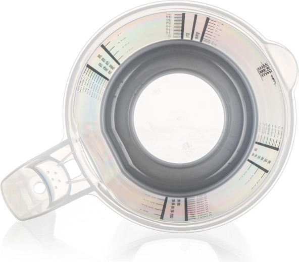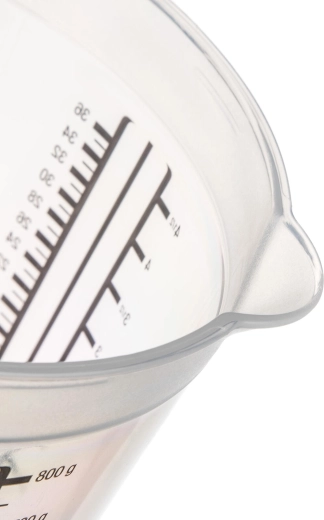 Stupnice v různých měrných jednotkách zajistí přesnost bez zdlouhavého přepočítávání. Vysoký okraj a tvarovaný výlevný okraj pomáhají k čistému a plynulému nalévání bez kapání.
