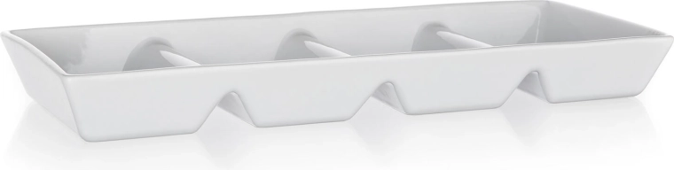 Objevte praktičnost a čistý design servírovací misky BIANCA. Čtyři oddělené sekce umožňují efektní a hygienické servírování různých pochutin bez míchání chutí. Nadčasová bílá barva a minimalistické linie podtrhnou vzhled každého stolu – od rychlé svačiny po sváteční pohoštění.
