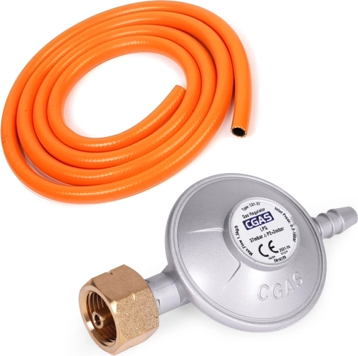 Uzamykatelný prostor pro PB láhev až 11 kg, stabilní základna a ochranná mřížka. Součástí je regulátor, hadice i odolný krycí obal proti počasí.