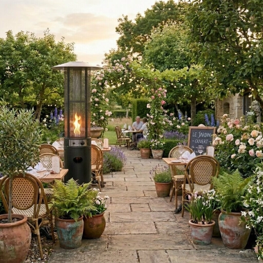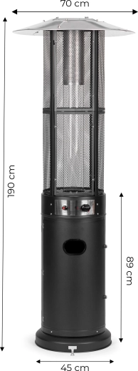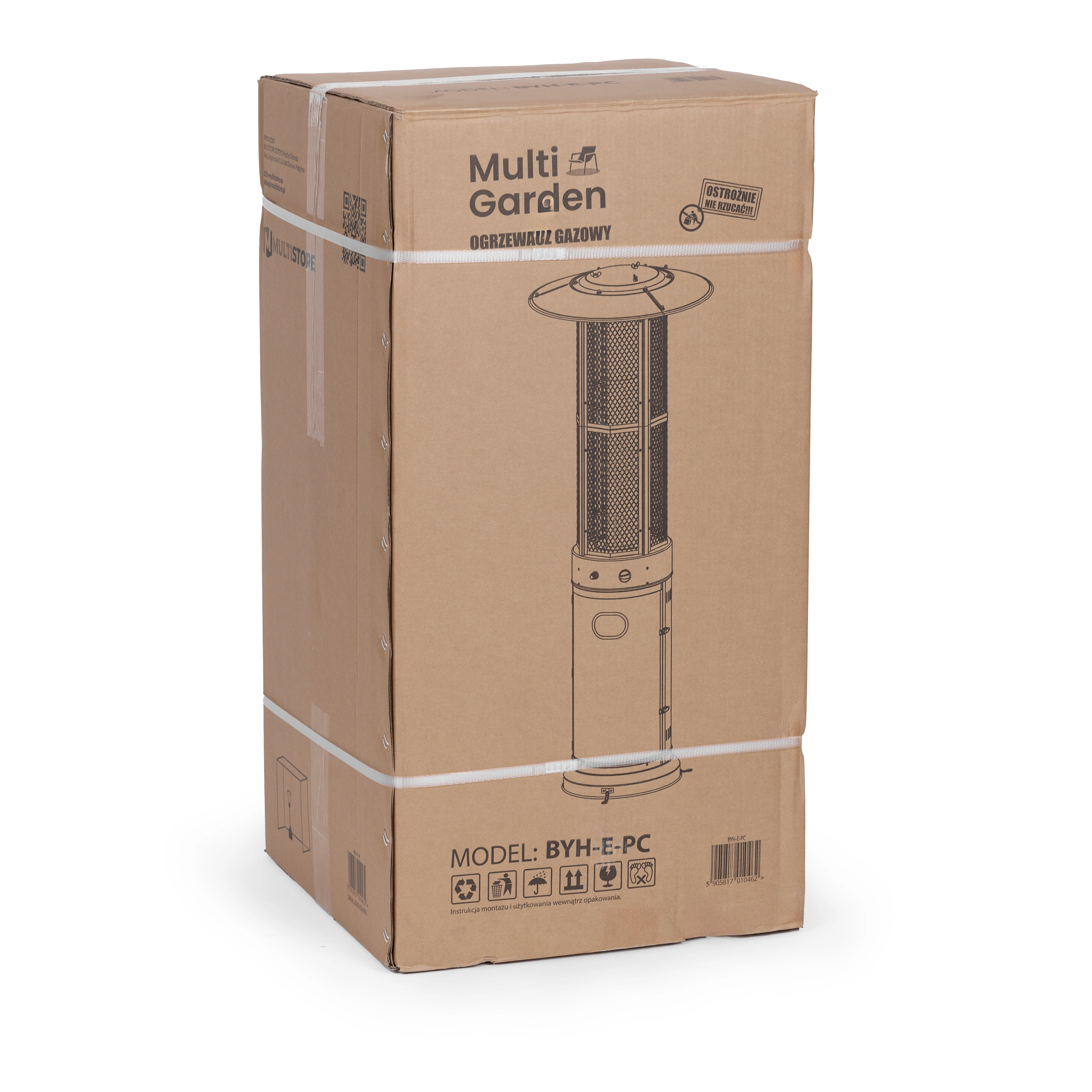 Plynový ohřívač MULTIGARDEN v „deštníkovém“ designu promění terasu či zahradu v útulné místo s příjemným teplem a atmosférickým plamenem viditelným ze všech stran. Díky vysokému výkonu 11 kW a efektivnímu rozptylu sálavého tepla spolehlivě vyhřeje okolí i v chladnějších dnech. Nerezová ocel, ochranná síť a skleněný tubus garantují dlouhou životnost a bezpečnost.