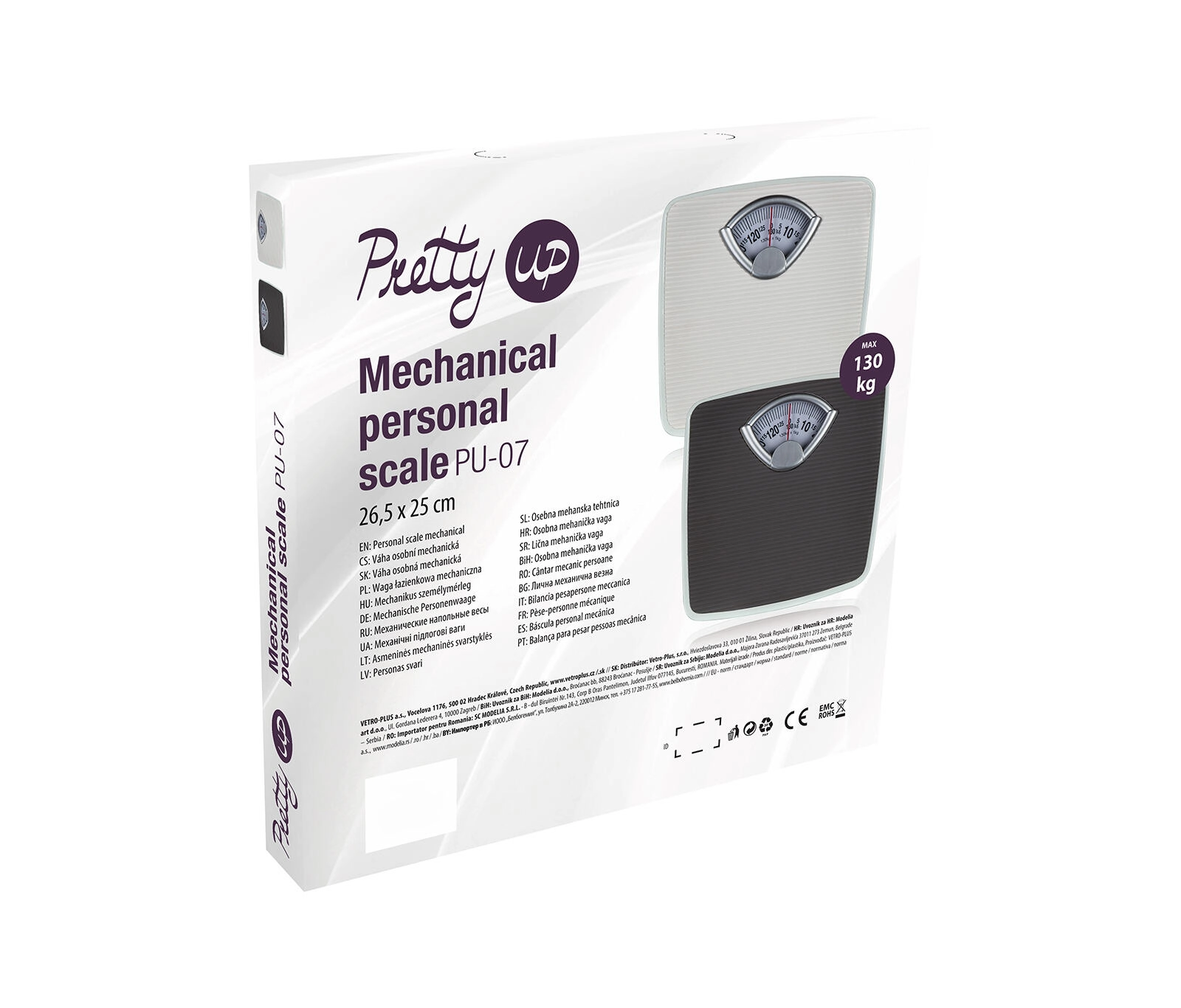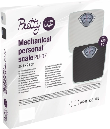 Tato mechanická osobní váha PU-07 v bílé barvě je praktickým doplňkem každé domácnosti. Díky analogovému ukazateli s červenou ručičkou rychle a přehledně zjistíte svou hmotnost, a to bez nutnosti výměny baterií. Protiskluzová struktura nášlapné plochy zajišťuje stabilitu při vážení.