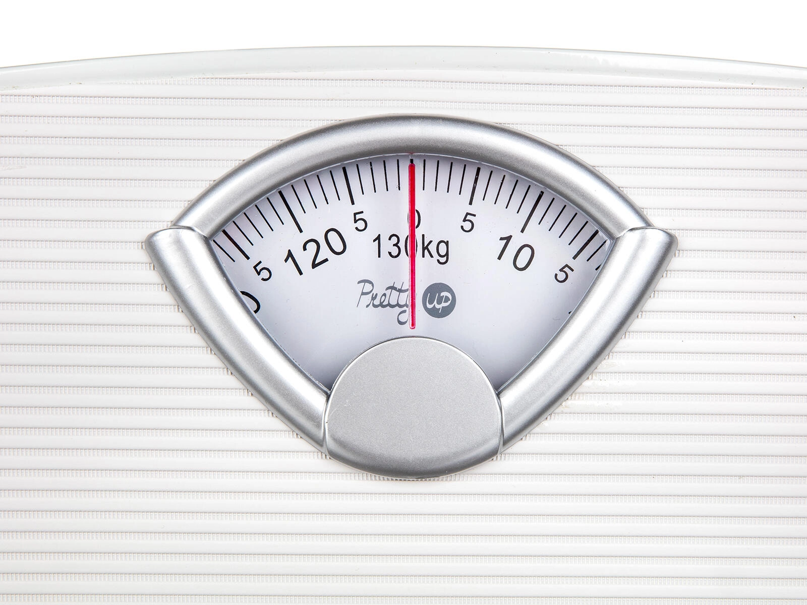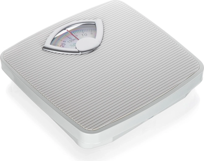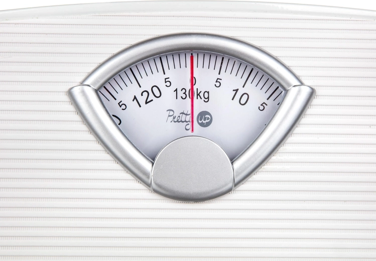 Velká stupnice s jasným označením a červenou ručičkou umožňuje rychlé a přesné odečítání hmotnosti až do 130 kg.