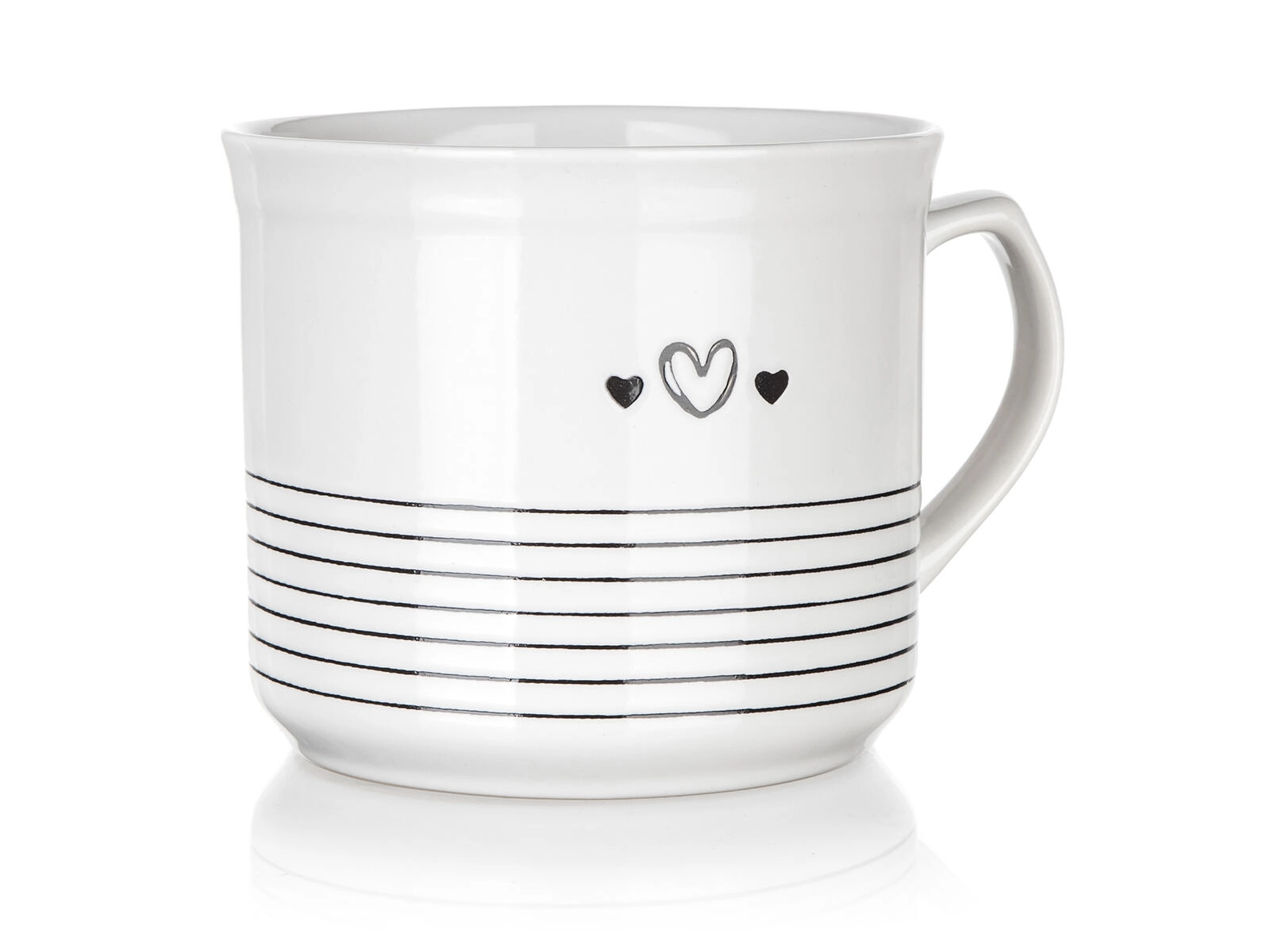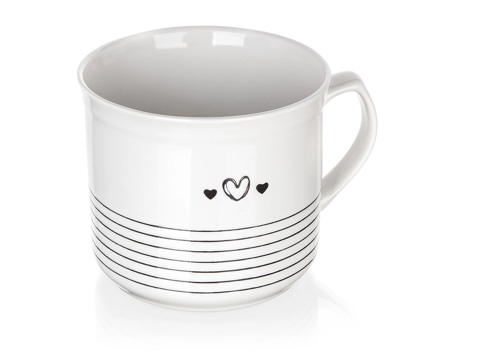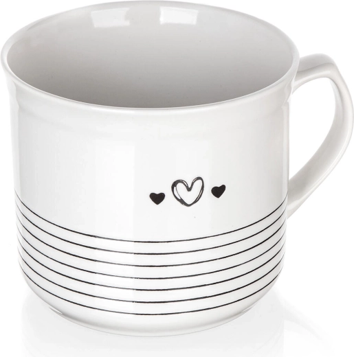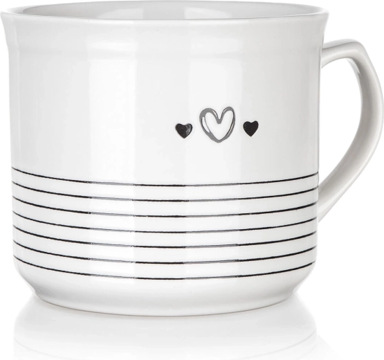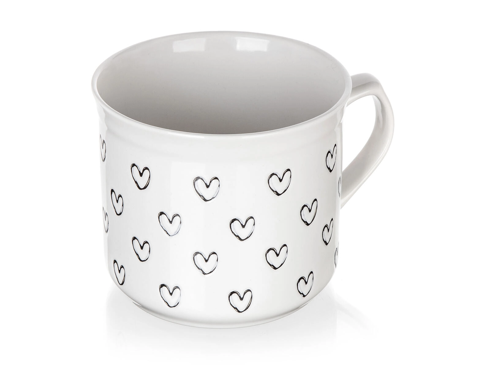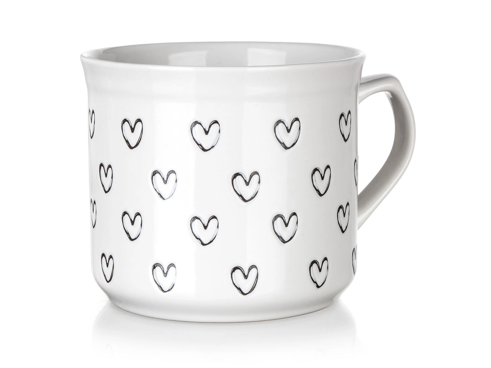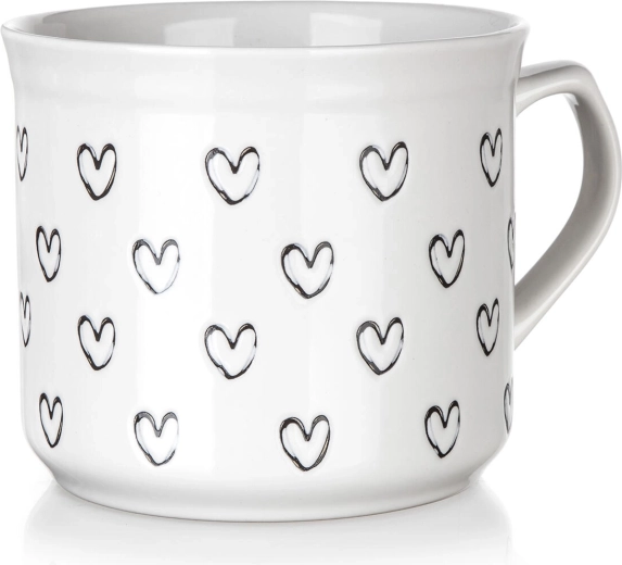Užijte si své oblíbené horké nápoje ve stylu s velkým keramickým hrnkem s perokresbou srdíček. Díky objemu 660 ml je perfektní pro dlouhé ranní kafe i poctivý bylinkový čaj. Lesklá glazura a čistý bílý základ s černými detaily dodají vaší kuchyni nadčasovou eleganci.