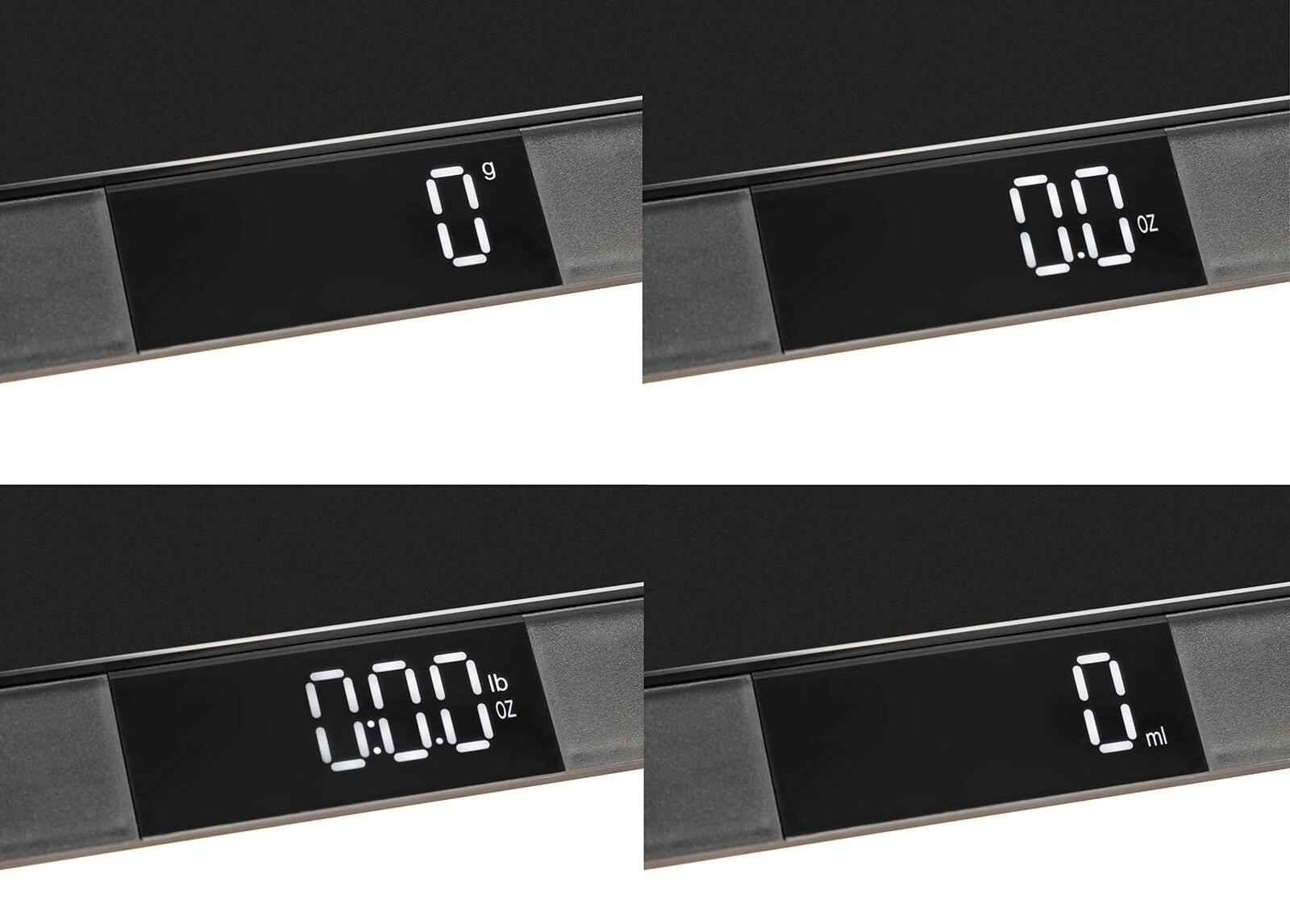 Jedním dotykem vynulujete hmotnost nádoby a snadno přepnete mezi g, oz, lb:oz a ml pro všestranné použití v kuchyni.