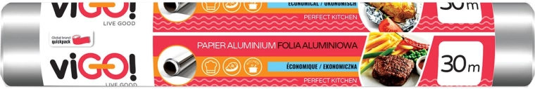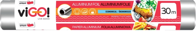 Praktická hliníková fólie pro každodenní použití v kuchyni. Ideální pro pečení, dušení i grilování, stejně jako pro balení a skladování potravin. Díky kvalitnímu materiálu neovlivňuje vzhled, chuť ani vůni jídla a lze ji bezpečně používat v troubě, lednici i mrazničce. Šířka 28 cm a délka 30 m zajistí pohodlné použití v domácnosti.