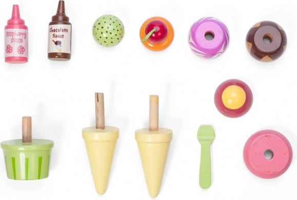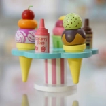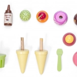 Odnímatelné kopečky, kornoutky i kelímek lákají k míchání „příchutí“ a zdobení malinovou či čokoládovou omáčkou. Skvělé pro hru na zmrzlinárnu.