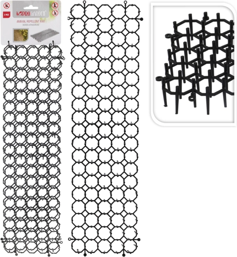 Chraňte svou zahradu, květinové záhony, trávník nebo domácí prostředí před nevítanými zvířaty. Podložka s hroty vytváří bezpečnou, ale účinnou překážku, která zabraňuje vstupu koček, psů a dalších zvířat bez nutnosti chemických prostředků. Diskrétní černá barva snadno splyne s okolím.