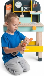 Dětský dřevěný ponk ALEX od LE TOY VAN nabízí vše, co malí opraváři potřebují pro realistickou hru. Díky pevnému zpracování z certifikovaného FSC dřeva a netoxickým barvám je bezpečný, odolný a šetrný k přírodě. Součástí je vestavěná cirkulárka, měrka a svěrák, horní police s háčky a spodní úložný prostor na další vybavení.
